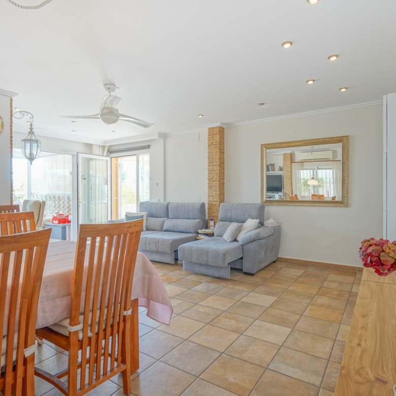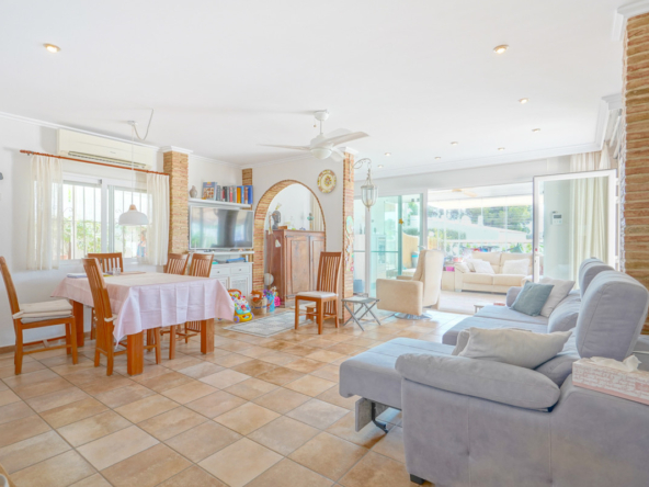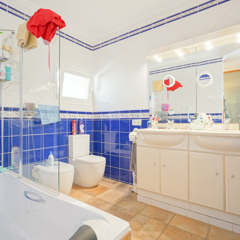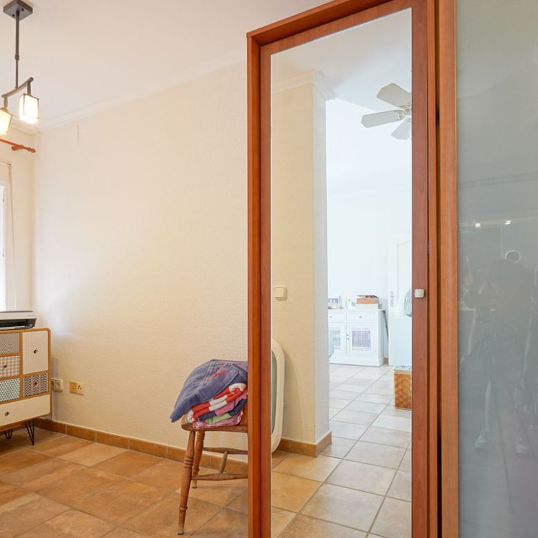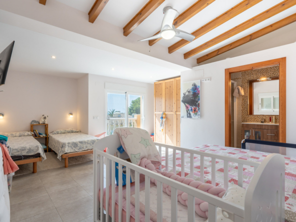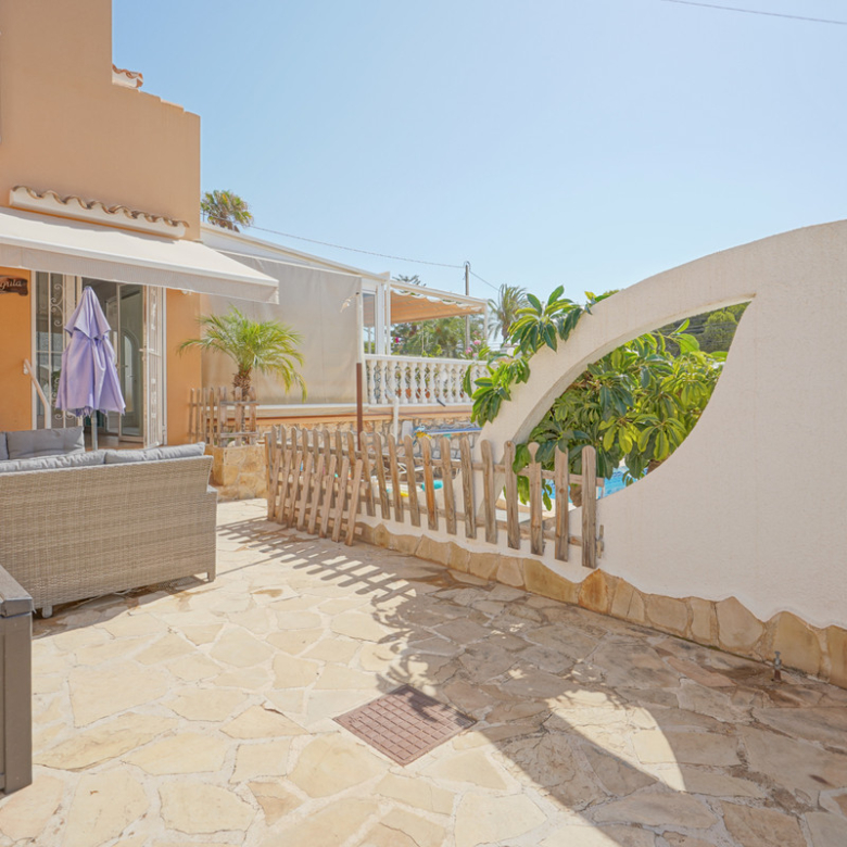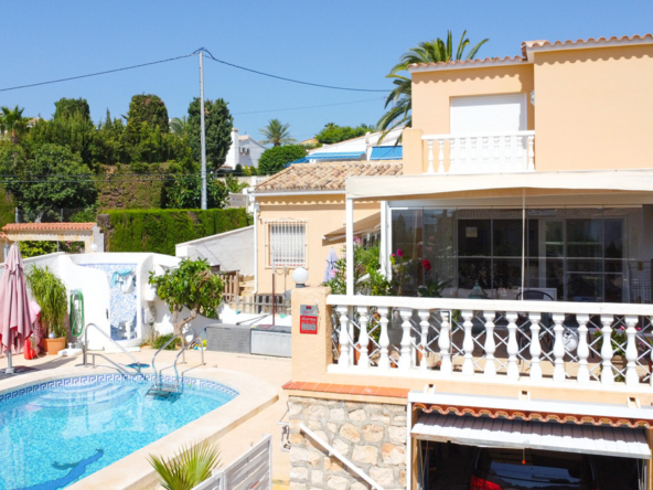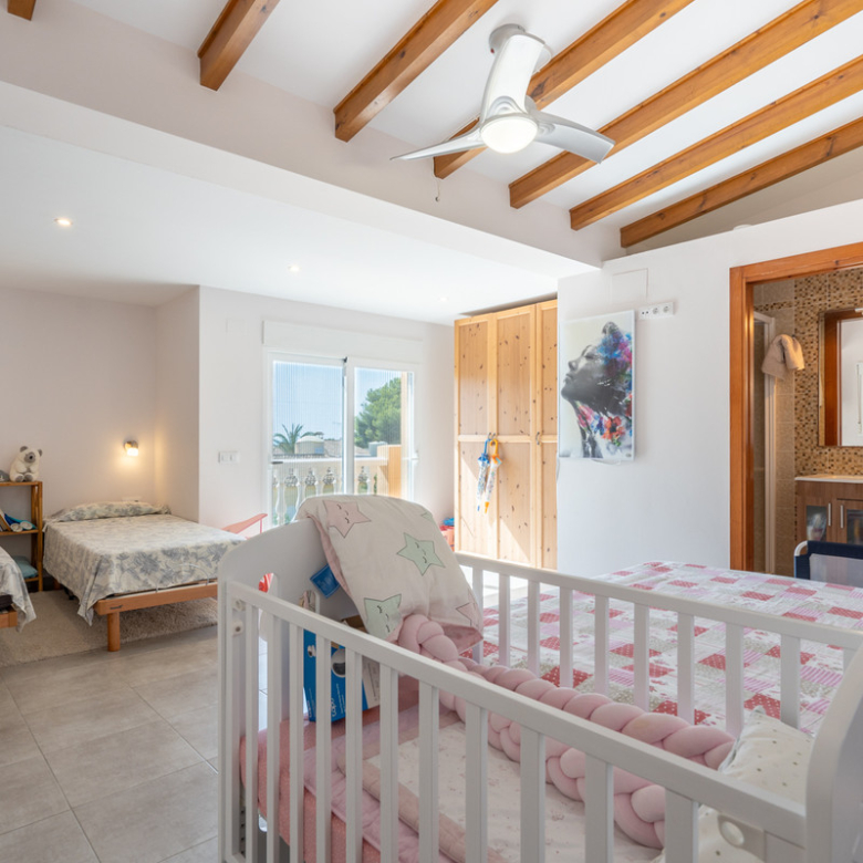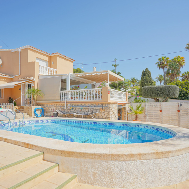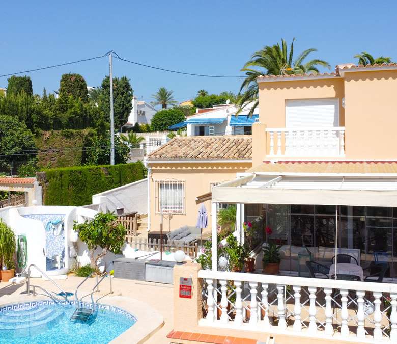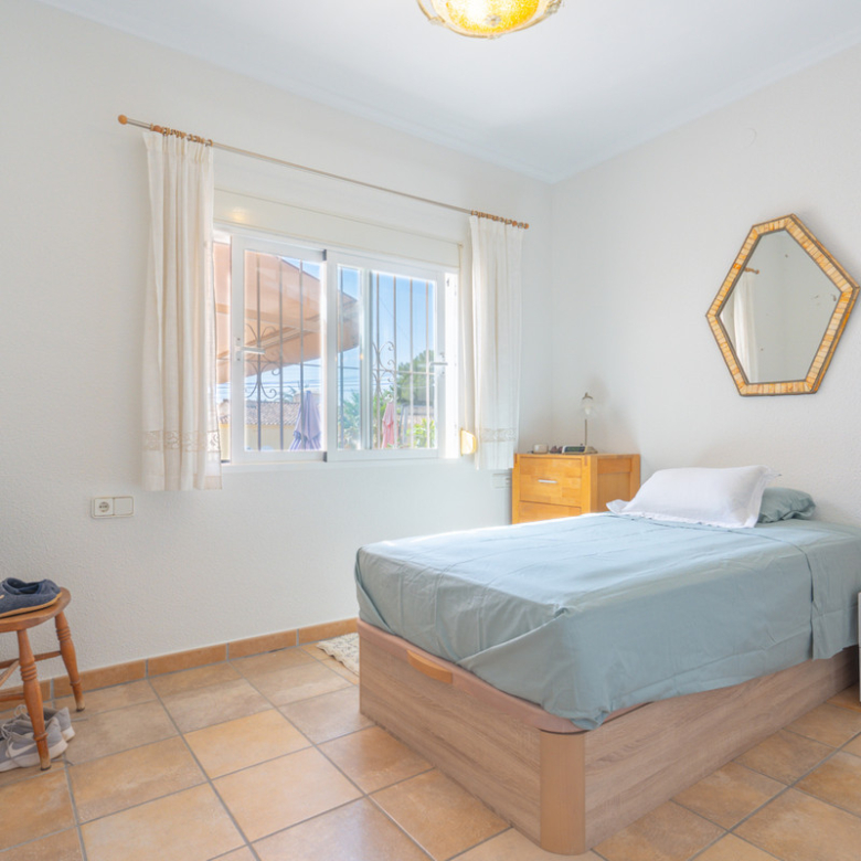 Deze traditionele villa bevindt zich in een rustige urbanisatie aan de idyllische kust van Benissa, op steenworp afstand van het levendige Calpe. Dankzij de unieke locatie geniet u hier van een adembenemend uitzicht op de azuurblauwe zee en de iconische Peñón de Ifach. Verspreid over twee verdiepingen en met een extra garage in de kelderverdieping, biedt deze villa alles wat u nodig heeft. De ruime benedenverdieping bestaat uit een lichte woonkamer, een moderne keuken, een stijlvolle ingeglaasde naya, twee comfortabele slaapkamers, twee badkamers, een dressing en een multifunctionele opslagruimte. De bovenverdieping, bereikbaar via een externe trap, beschikt over een vierdubbele slaapkamer met een eigen badkamer en een balkon, ideaal voor gasten. Geniet van de zon op de diverse terrassen op verschillende hoogtes, of neem een verfrissende duik in het grote ovaalvormige zwembad met warme buitendouche. Met vloerverwarming op de benedenverdieping en infraroodverwarming boven, plus airconditioning op beide verdiepen, ervaart u het hele jaar door ultiem comfort. Op minder dan vijf minuten wandelen bereikt u het pittoreske strandje Mallorquí, waar een schilderachtig wandelpad langs de kust begint en u in één richting naar Calpe brengt en in de andere richting langs de kristalheldere baaien van Benissa tot aan het populaire zanstrandje La Fustera.