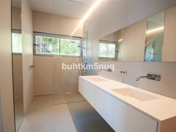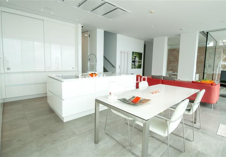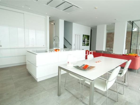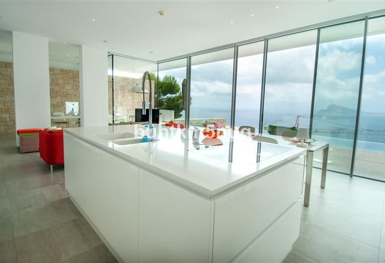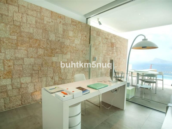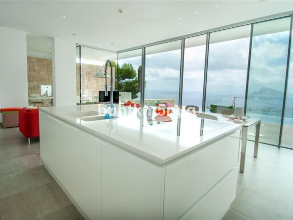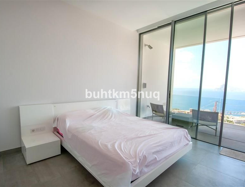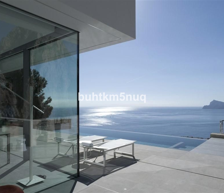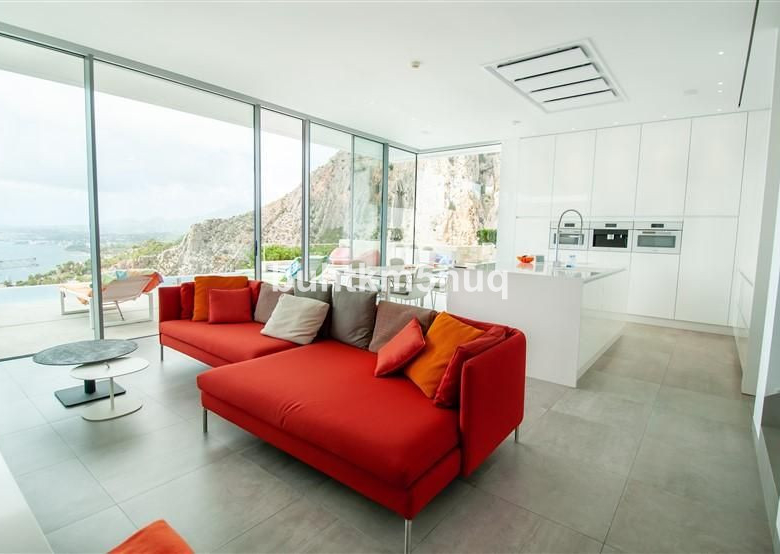 Deze zo goed als nieuwe luxe villa combineert strakke architectuur, maximale privacy en een werkelijk adembenemend uitzicht op de Middellandse Zee vanuit nagenoeg elke ruimte. ~De woning is verdeeld over drie stijlvolle woonniveaus, verbonden via een elegante traphal met privélift.~~Op de bovenverdieping bevindt zich een royale inkomhal met directe toegang vanuit de ruime garage.~Één niveau lager bevinden zich twee grote slaapkamers met badkamer en suite en een aparte tv-lounge, die perfect kan worden ingericht als derde slaapkamer.~~Op het woonniveau verwelkomt de villa u met een open, lichtrijke leefruimte en een volledig uitgeruste designkeuken met kookeiland. Verder vindt u hier een handige berging/wasruimte, een gastentoilet en een stijlvol ingericht kantoorgedeelte — ideaal voor wie thuis wil werken met uitzicht op zee.~~De leefruimte geeft uit op een royaal zonneterras met een verwarmd zoutwater infinity zwembad (12 x 3,5 m), dat letterlijk overloopt in de horizon van de Middellandse Zee. Onder het zwembad bevindt zich bovendien een ruime multifunctionele kelder — ideaal als gym, wellnessruimte of wijnkelder.~Voorzieningen van topniveau:~~Vloerverwarming per kamer regelbaar~Geïntegreerde airconditioning~Volledige domotica-installatie~Alarmsysteem en videobewaking~Centraal stofzuigsysteem~Hoogwaardige materialen en afwerking volgens de strengste normen~~Deze hyperuitgeruste moderne villa biedt u niet alleen comfort en stijl, maar ook een uitzonderlijke ligging en een panoramisch uitzicht dat u elke dag opnieuw zal doen dromen. U heeft nog de mogelijkheid om 200 m2 bij te bouwen gezien de oppervlakte van het grondstuk.~~~~~