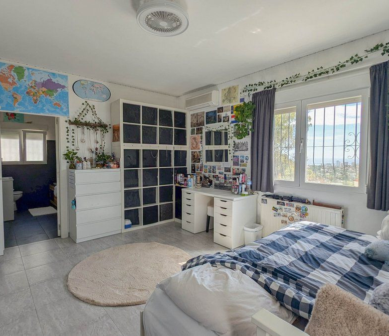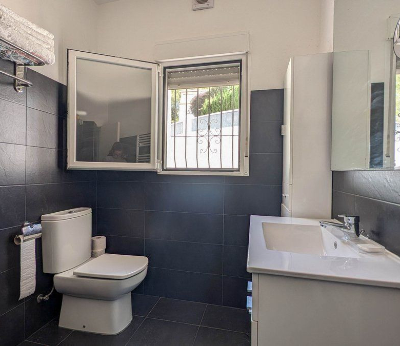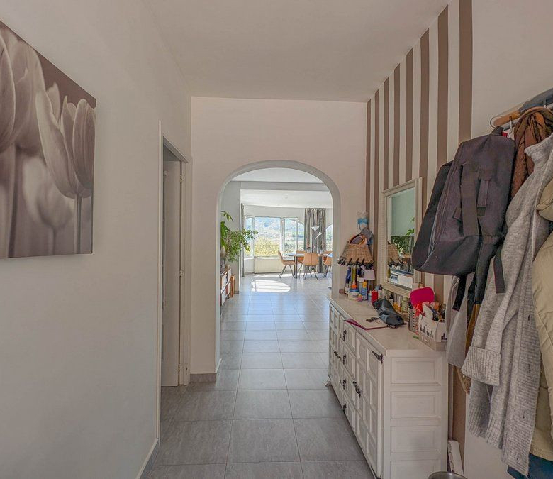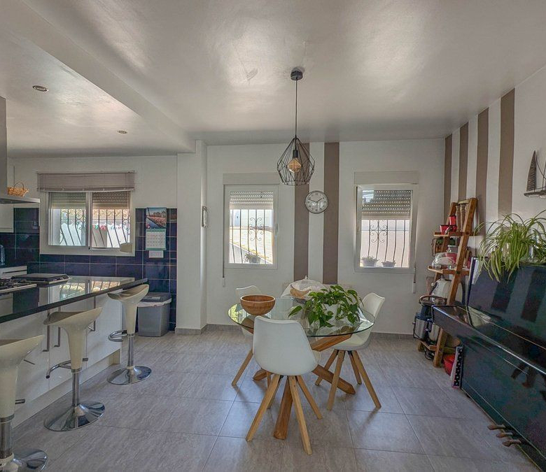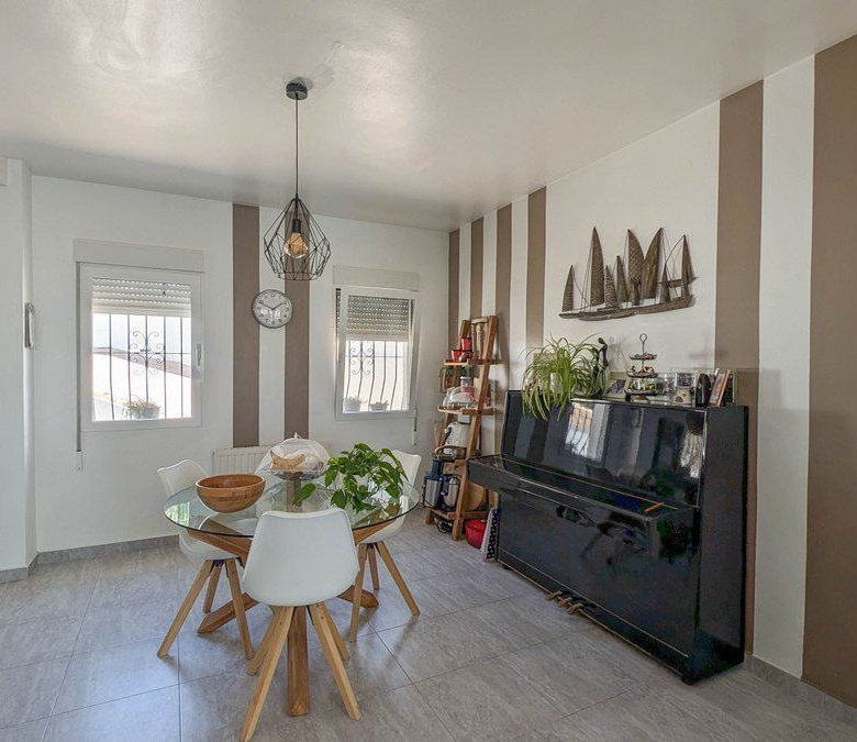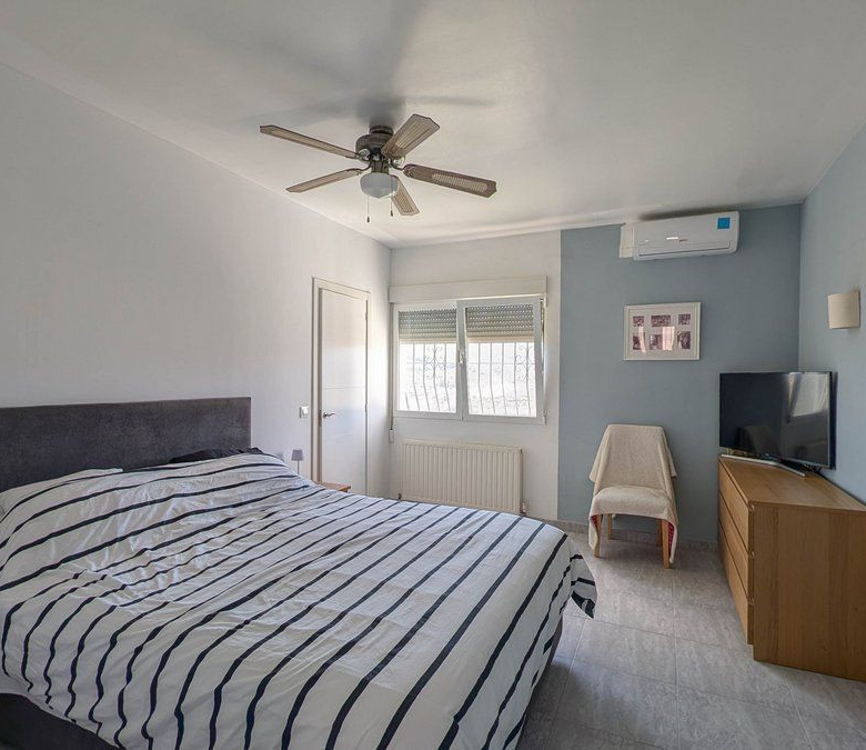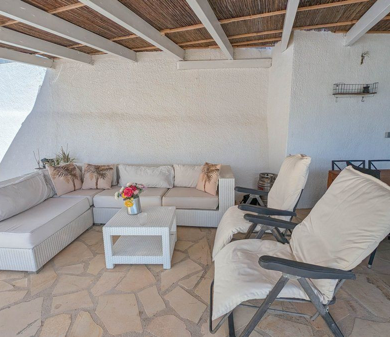 Outside, the upper floor offers a wonderful terrace, ideal for relaxing or enjoying a meal outdoors in the summer kitchen, while taking in the views of the sea and the Peñón. On the ground floor, a 9×4 meter swimming pool becomes the focal point, surrounded by a relaxation area and a small barbecue, perfect for enjoying outdoor moments.