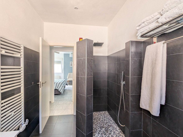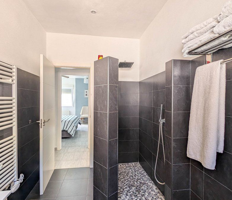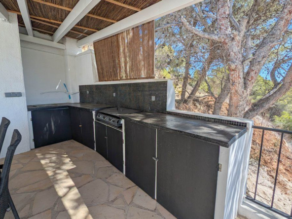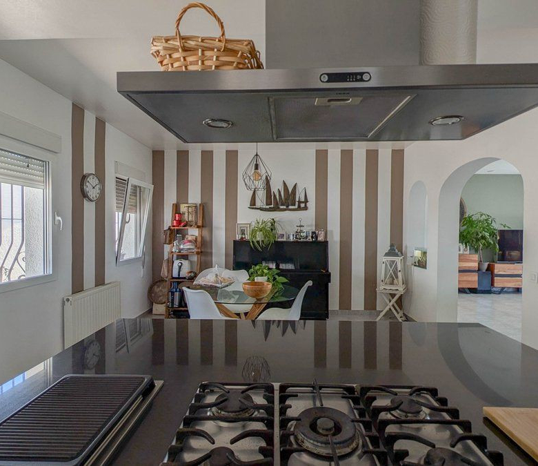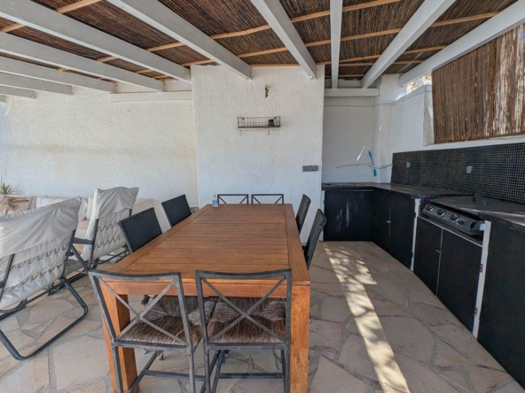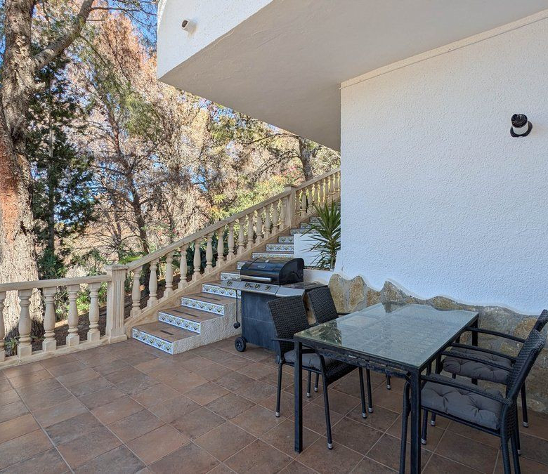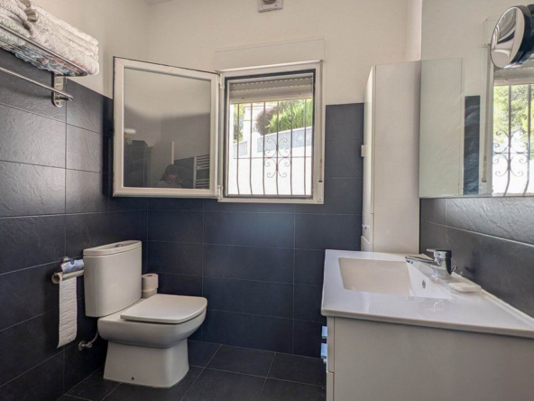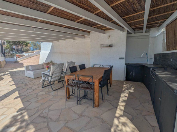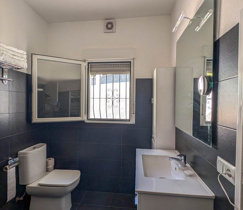 Outside, the upper floor offers a wonderful terrace, ideal for relaxing or enjoying a meal outdoors in the summer kitchen, while taking in the views of the sea and the Peñón. On the ground floor, a 9×4 meter swimming pool becomes the focal point, surrounded by a relaxation area and a small barbecue, perfect for enjoying outdoor moments.