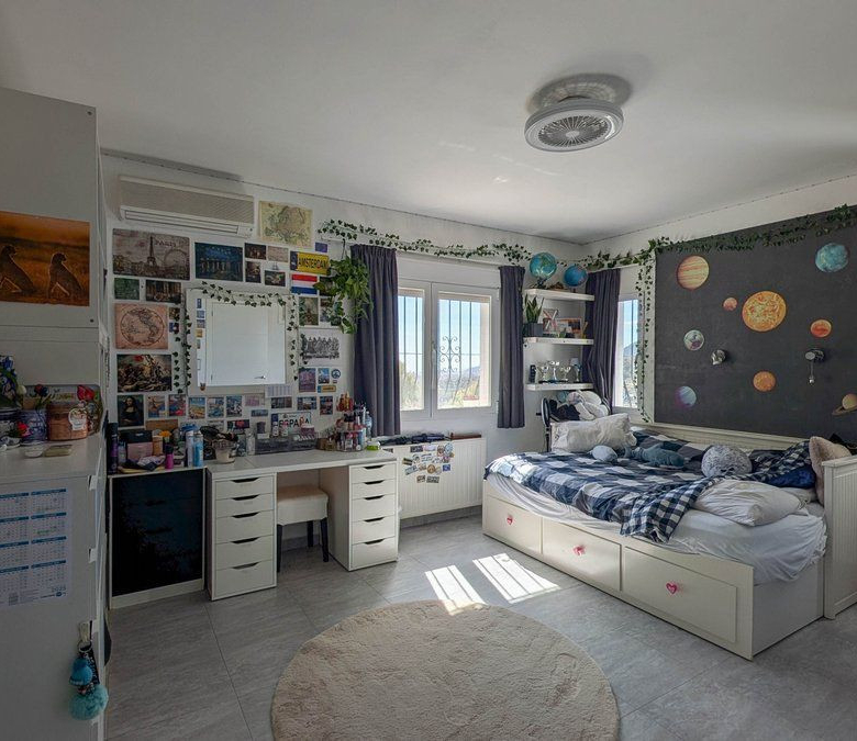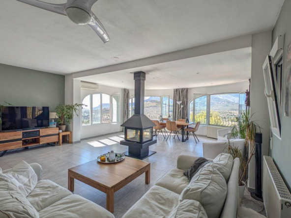 The property, with a built area of 250 m² distributed over two floors, stands out for its spacious and welcoming design. On the upper floor, the living-dining room is the heart of the house, featuring a fireplace that adds warmth and charm to the space, as well as offering the opportunity to enjoy the views. A large, well-equipped kitchen complements this floor, along with three comfortable bedrooms with built-in wardrobes, and two bathrooms, one of them en-suite, providing comfort and privacy.