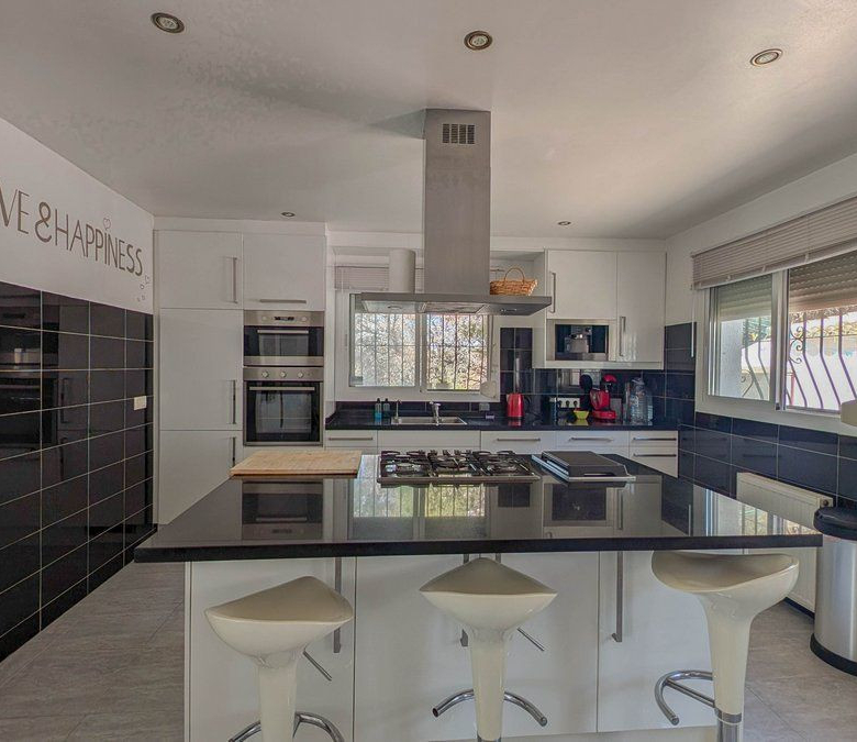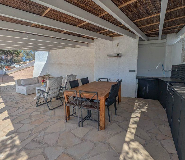 The villa is located in the exclusive La Empedrola residential area, occupying a large plot of approximately 1.700 m², surrounded by green areas that provide a sense of tranquility and privacy, with unparalleled views stretching from the Peñón de Ifach to the town of Benissa.