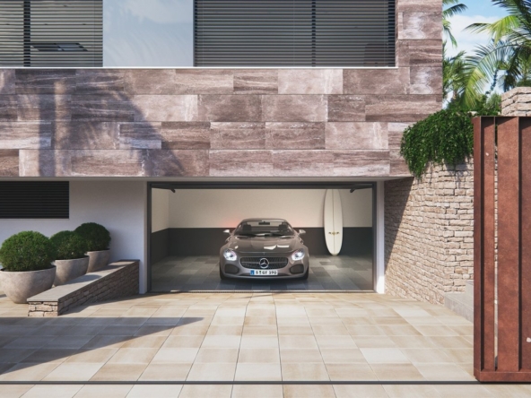 De toegangspoorten naar de tuin en de garage zijn geautomatiseerd met infrarood afstandsbediening. Garage voor twee auto’s en buiten parkeerplaats voor een extra auto.