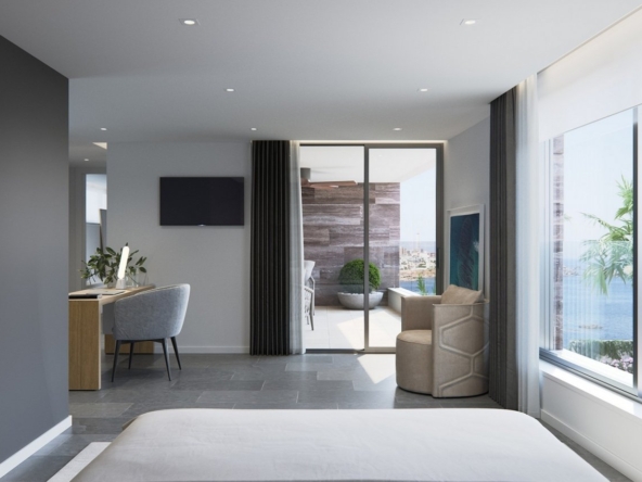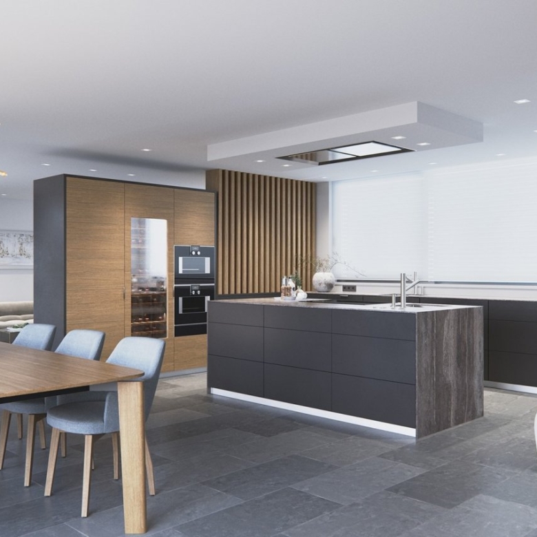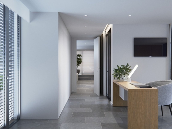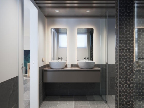 Badkamers met hangende apparatuur, wastafels op aanrecht en kranen met thermostaat, airconditioning en verwarming, moderne en elegante woonkeuken afgewerkt, aanpasbaar ontwerp inclusief high-end apparatuur ingebed in het ontwerp en geïntegreerde wijnkelder.