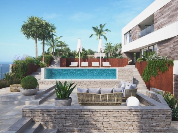 De Villa heeft een oppervlakte van 1.000 m2 grond, 585 m2 bebouwd, naast 805 m2 tuin volledig afgewerkt met privé zwembad van 10 x 5 meter met onvergelijkbaar uitzicht, met oprolbaar dekzeil en verwarmd. Het heeft ook een buitenjacuzzi en een ontspanningsruimte met panoramisch uitzicht op de Middellandse Zee.