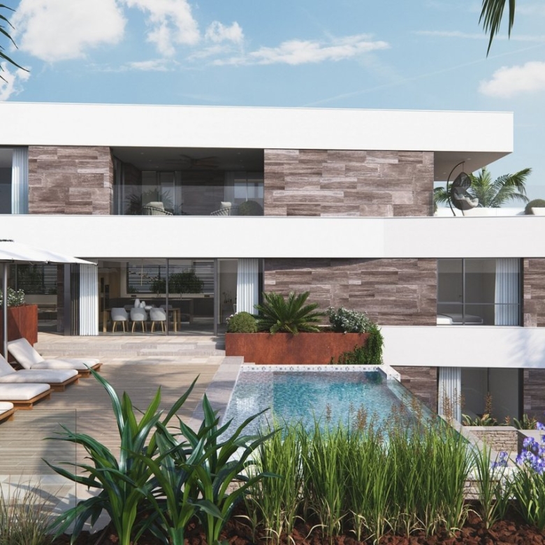De tuinen hebben een waterafvoersysteem in de vloer, volledig afgewerkt en aanpasbaar met inbegrip van vegetatie, irrigatie en verlichting. Terrassen op verschillende hoogtes creëren gezellige sferen omringd door vegetatie en een oneindig uitzicht op zee.