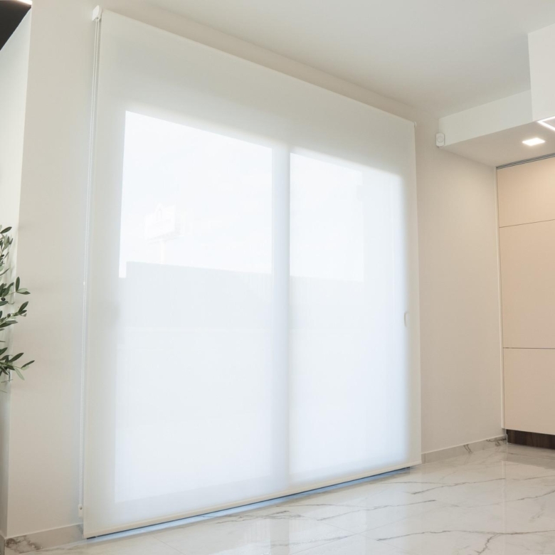 PVC ramen met dubbele beglazing en op afstand bedienbare gemotoriseerde rolluiken.