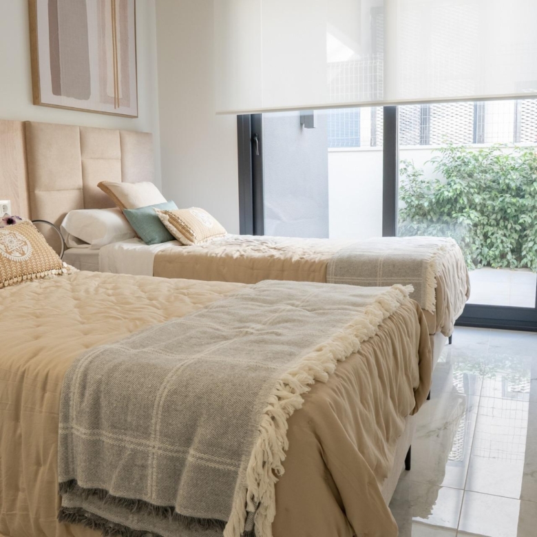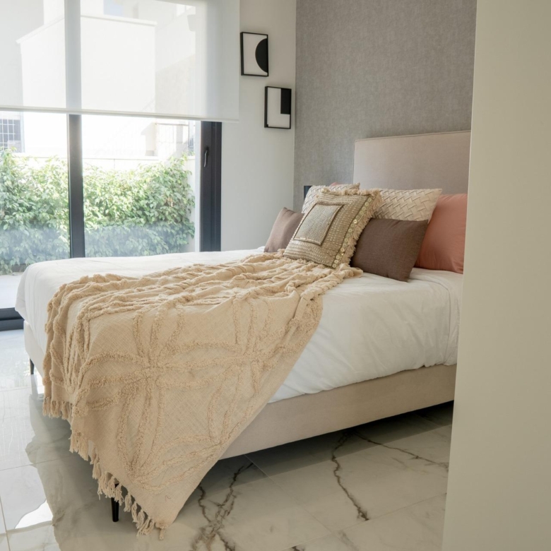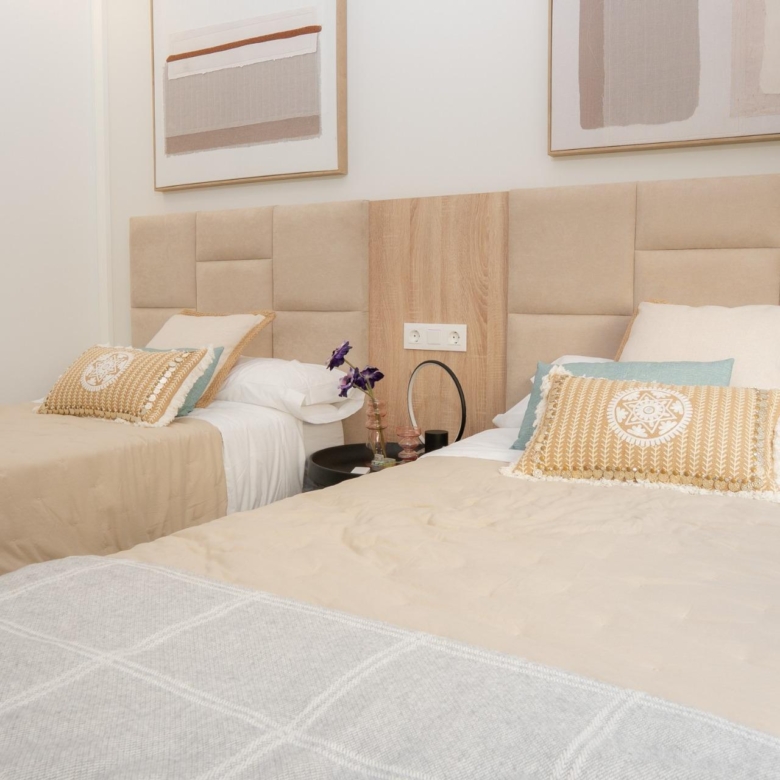 Bungalows: Units op de begane grond met een privétuin of op de bovenste verdieping met een solarium. Alle bungalows hebben twee slaapkamers, twee badkamers, een parkeerplaats en een berging, gelegen rond een centrale gemeenschappelijke ruimte met een zwembad en aangelegde tuinen.