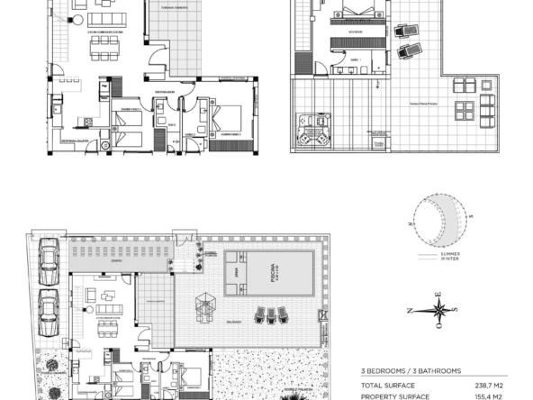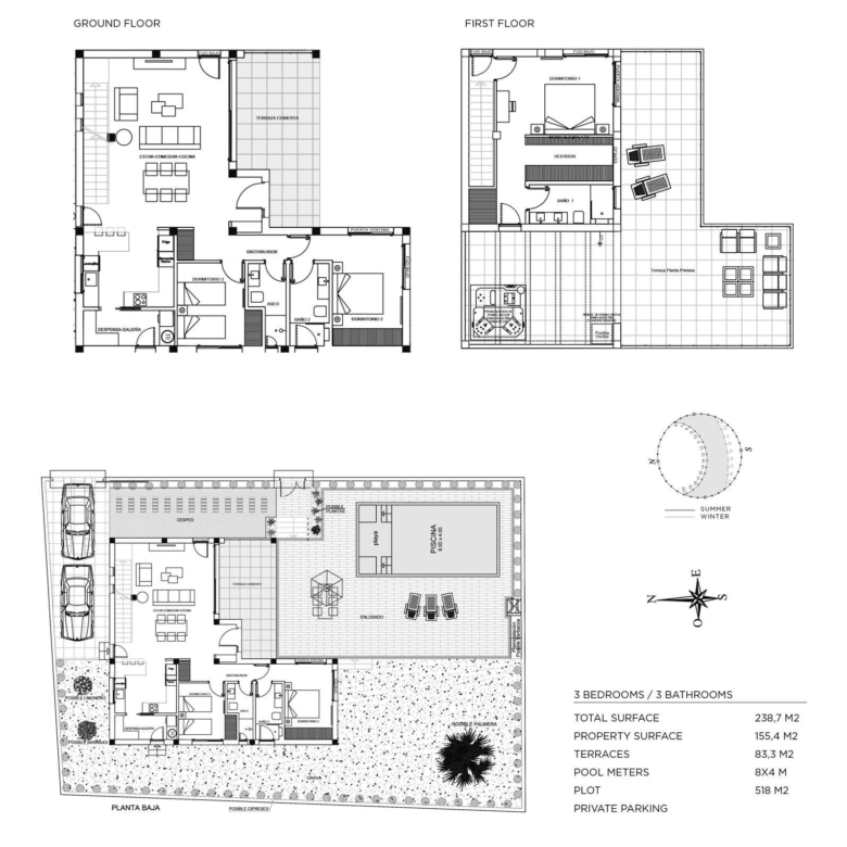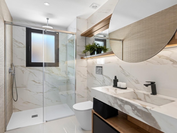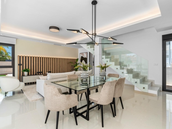 Villa gebouwd over 2 verdiepingen, heeft een woon-eetkamer met open keuken, 3 slaapkamers en 3 badkamers, groot terras, privétuin, zwembad en parkeerplaats.