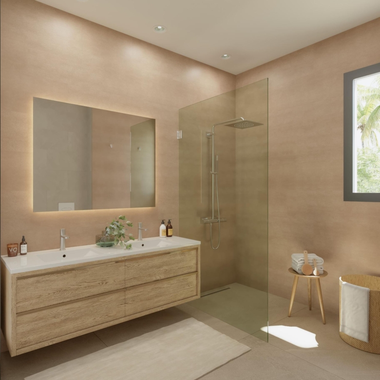 Moderne villa’s en halfvrijstaande villa’s met percelen van meer dan 200 m2. Alle woningen zeer licht met 3 grote slaapkamers en 3 volledig uitgeruste privébadkamers. Er is ook een extra gastentoilet.