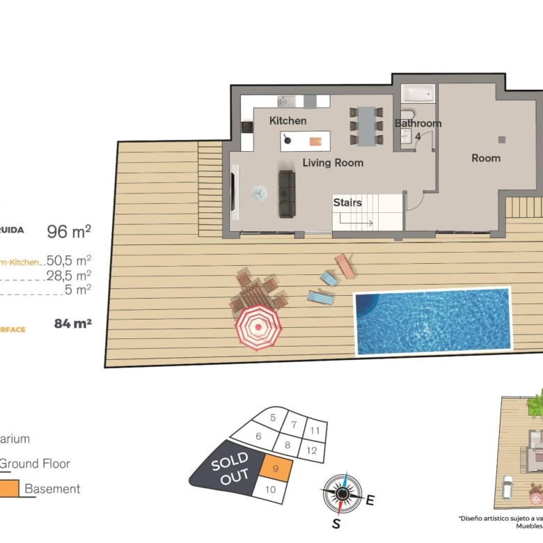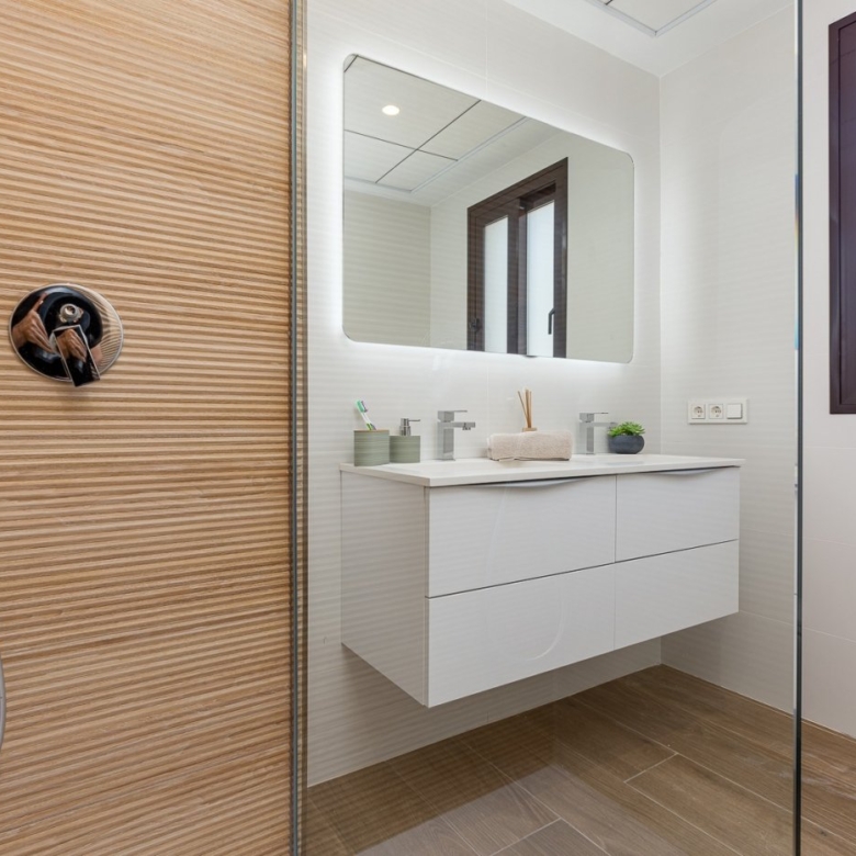 Brede en lichte villa’s met 4 slaapkamers en 4 badkamers, open keuken met woon-eetkamer, mooi terras, privé tuin met het zwembad en parkeerplaats.