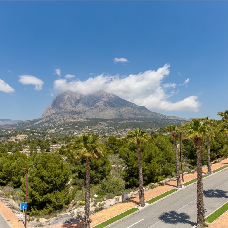 Het dorp ligt op de berghelling van Puig Campana en biedt een prachtig uitzicht op de bergen, de kust en de Middellandse Zee.