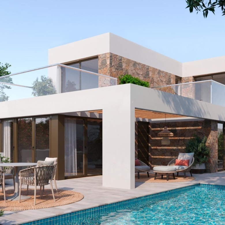 De villa’s zijn ontworpen in een eigentijdse stijl, met optimaal natuurlijk licht en panoramisch uitzicht. Je kunt kiezen uit verschillende modellen met opties van 2 tot 4 slaapkamers, en sommige ontwerpen hebben een kelder met Engelse patio, waardoor het mogelijk is om extra slaapkamers toe te voegen.