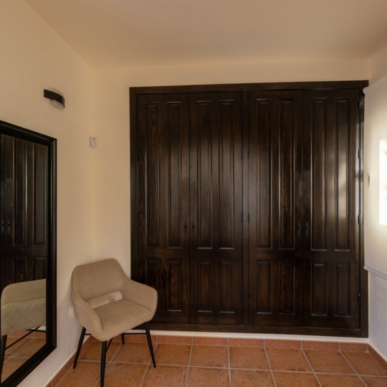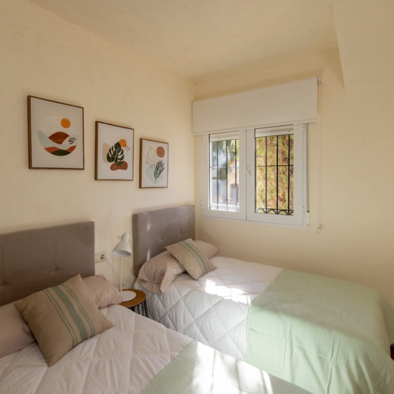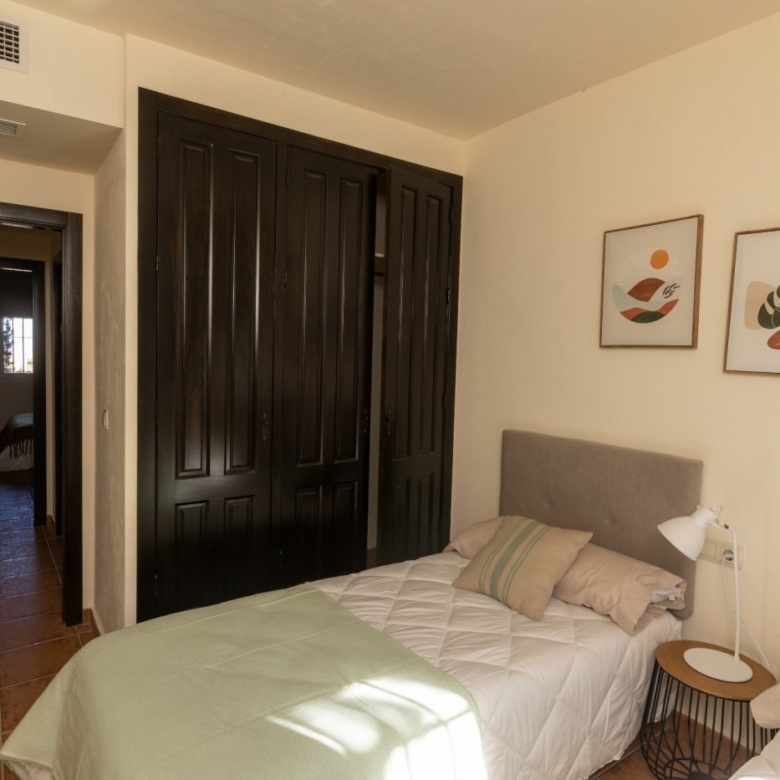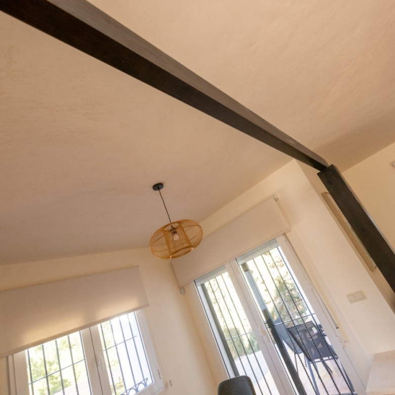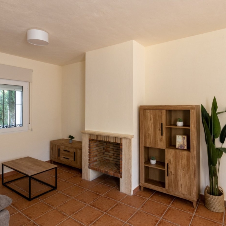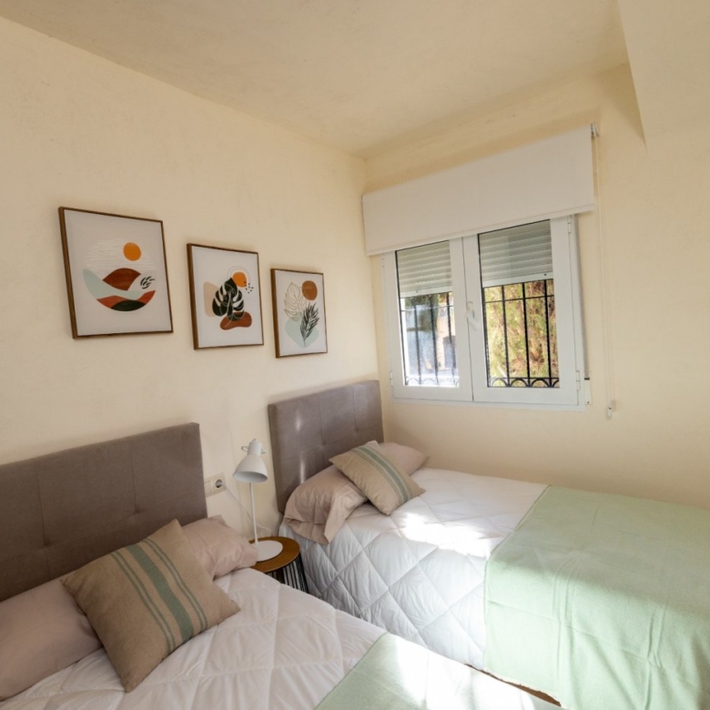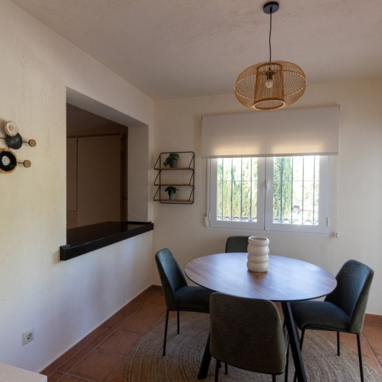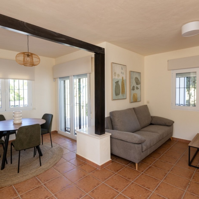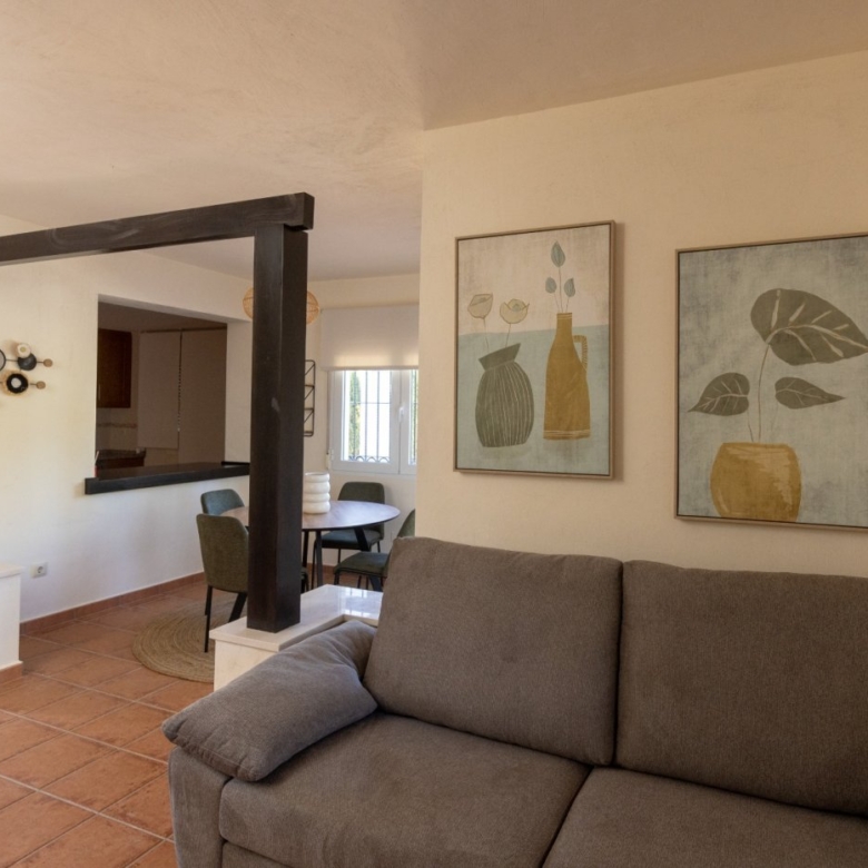 Deze ongebruikelijke design halfvrijstaande villa heeft 3 slaapkamers en 2 badkamer, onafhankelijke keuken, woonkamer met openslaande deuren naar de overdekte veranda en het half overdekte dakterras.