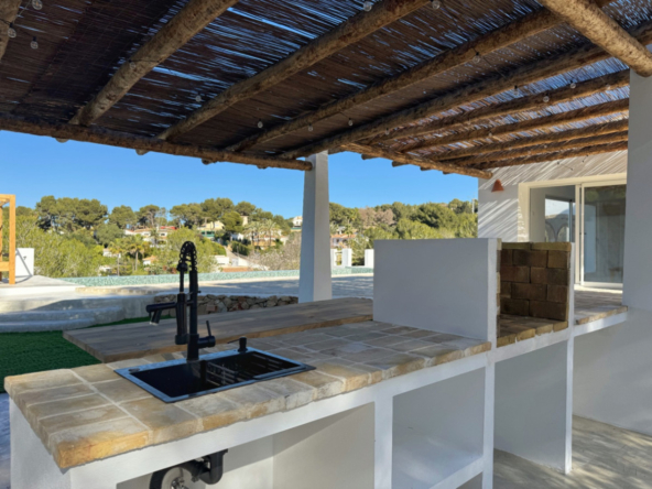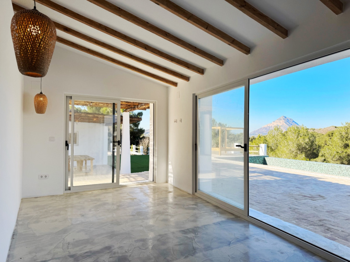 Villa in Ibiza-stijl in renovatie, gelegen op slechts een korte loopafstand van het Arenal-strand in Javea. Deze woning valt op door zijn spectaculaire overloopzwembad van 12×4,5 meter, met vrij uitzicht op de Montgó en de natuurlijke omgeving. Op een perceel van 3.000 m² heeft het hoofdhuis vier slaapkamers met eigen badkamer en een gastentoilet. Daarnaast heeft het een apart gastenverblijf, compleet met een slaapkamer, woonkamer en keuken. Een juweel voor wie op zoek is naar luxe en de nabijheid van de zee in een mediterrane omgeving.