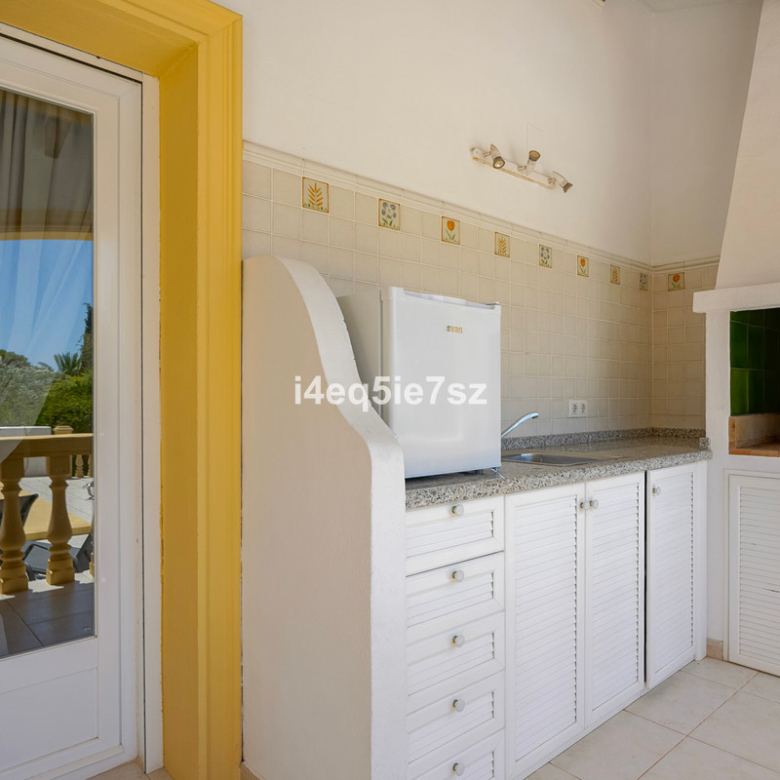 In de linker vleugel van het huis vindt u de hoofdslaapkamer met een eigen ensuite badkamer. Twee extra royaal bemeten slaapkamers delen een goed uitgeruste tweede badkamer. Zowel de hoofdslaapkamer als de woonruimte geven toegang tot een overdekt terras in de schaduw, compleet met een buitenshuis zomerkeuken — de perfecte setting voor dineren en entertainen in de open lucht.