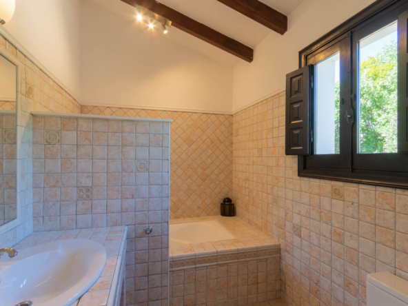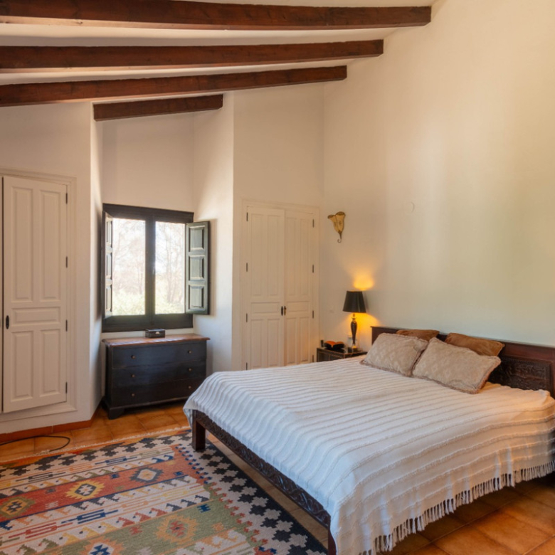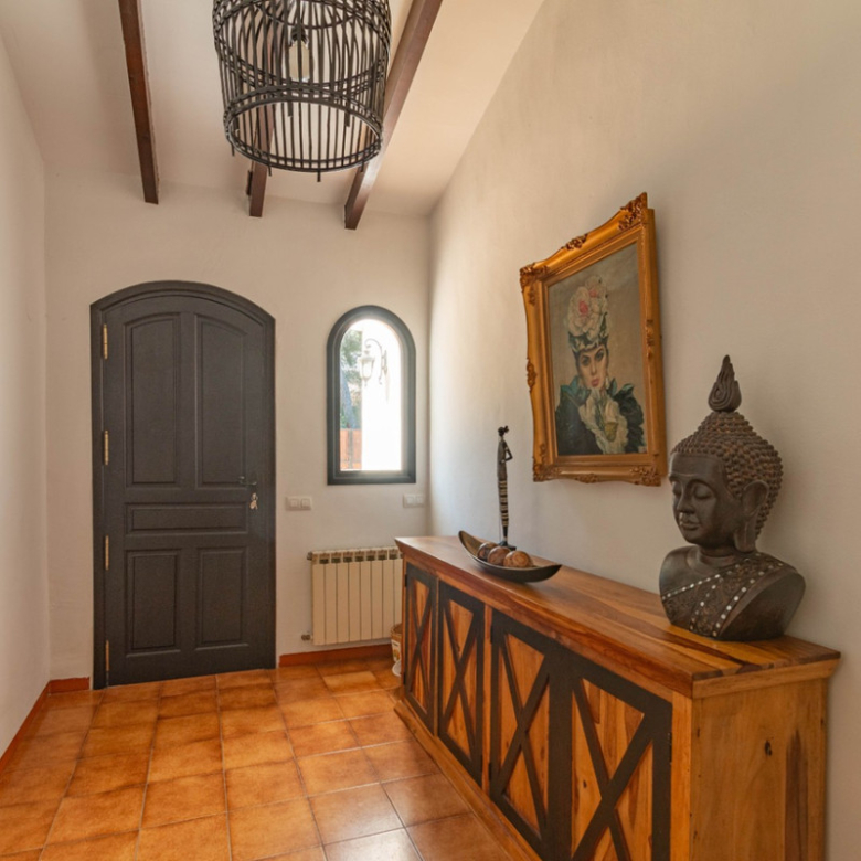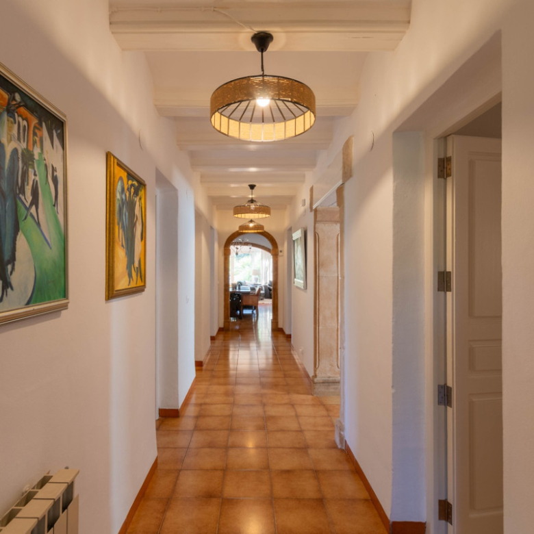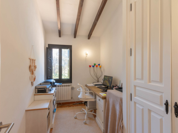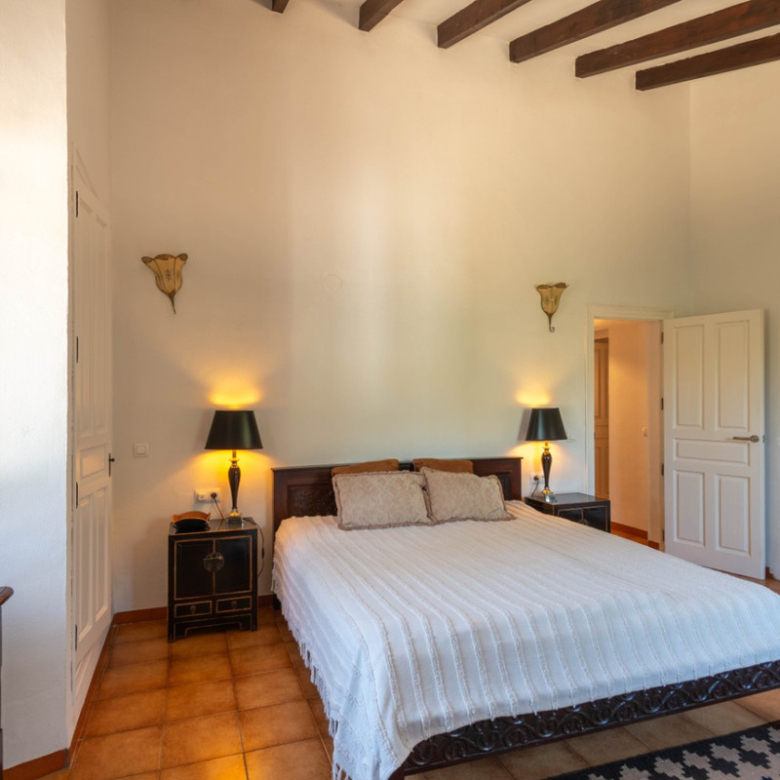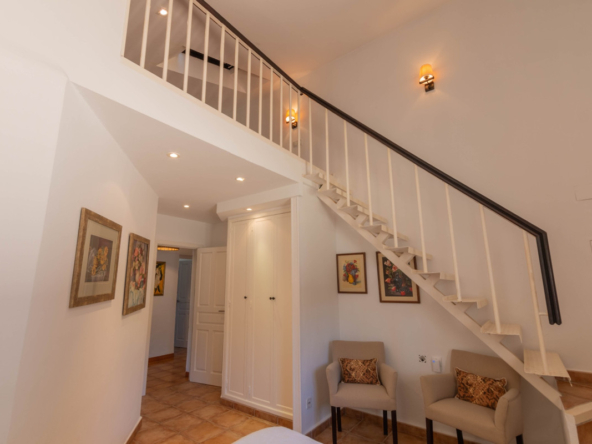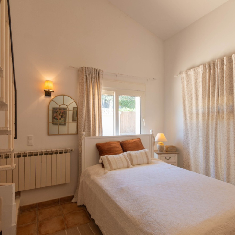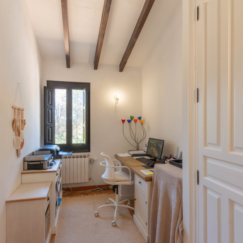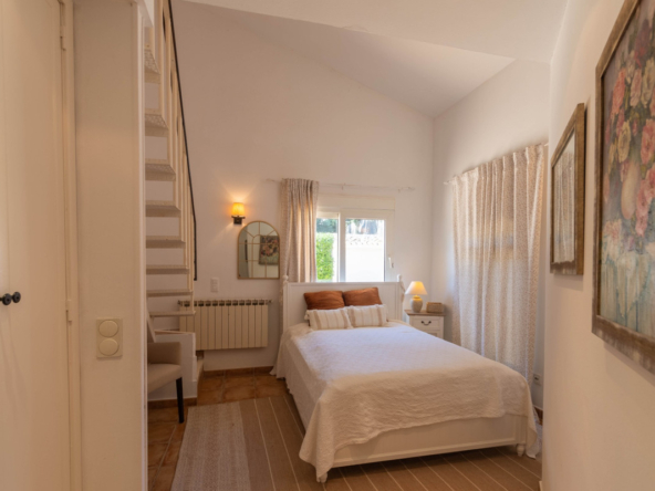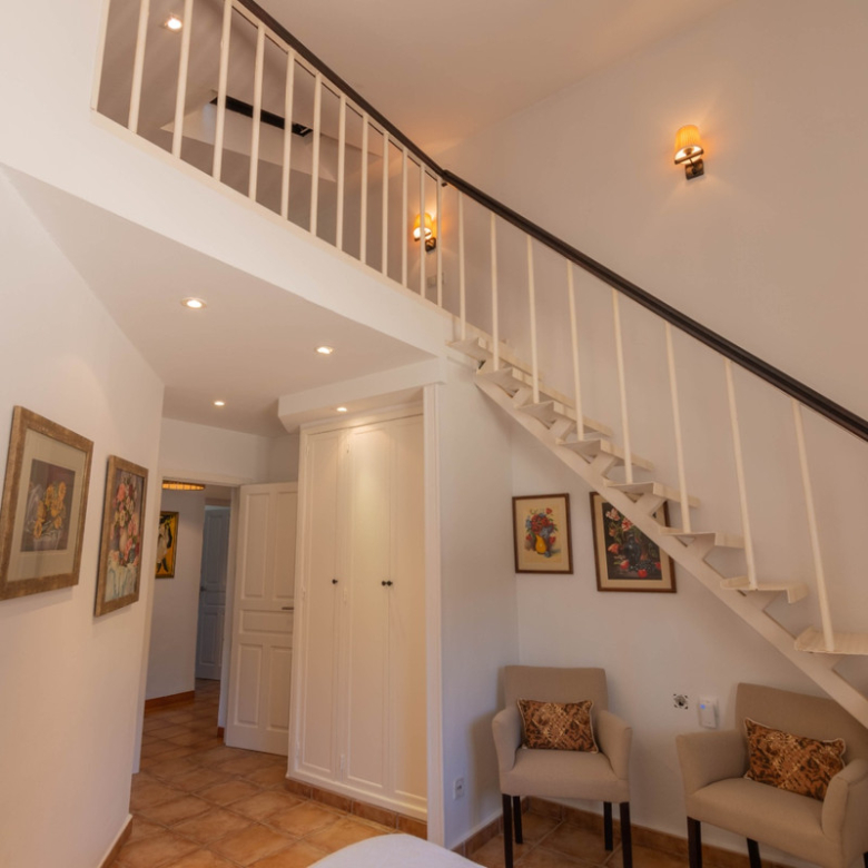 De villa beschikt over vier goed ingedeelde slaapkamers, waaronder een ruime hoofdsuite met een grote inbouwkast en een elegante en-suite badkamer. Een van de gastenkamers heeft een vide, terwijl een van de kleinere kamers momenteel wordt gebruikt als privé-kantoor thuis—ideaal voor telewerken of een creatieve ruimte. Een moderne gastenbadkamer is toegankelijk voor de overige verblijven.