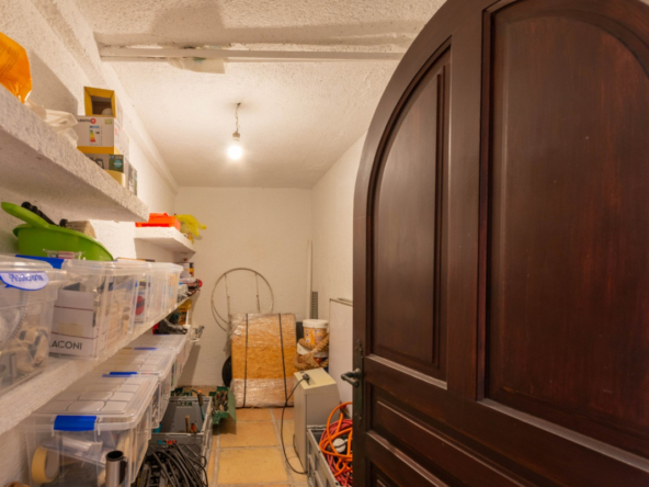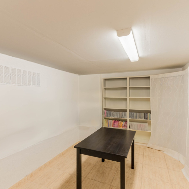 Op de begane grond beschikt de woning over een grote kelder, die momenteel wordt gebruikt als opslag- en kantoorruimte, met uitstekend potentieel om omgebouwd te worden tot een onafhankelijk appartement, gym of extra woonruimte.