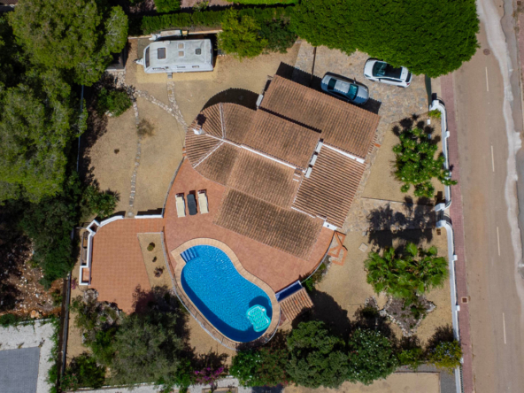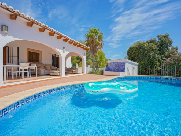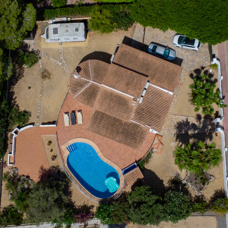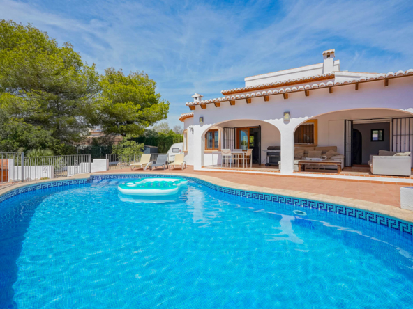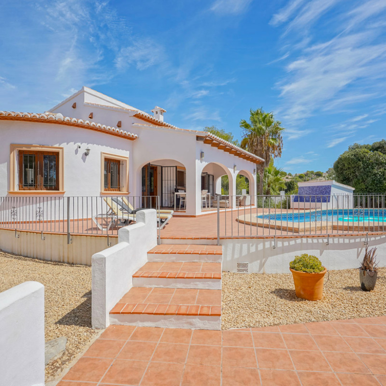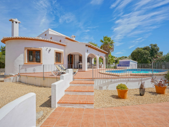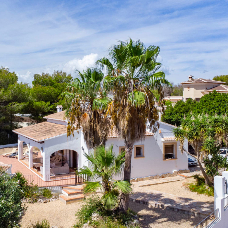 Deze charmante villa bevindt zich in een rustige urbanisatie, op een steenworp afstand van enkele van de mooiste baaien van Jávea, waaronder Cala Portichol en Cala Granadella.