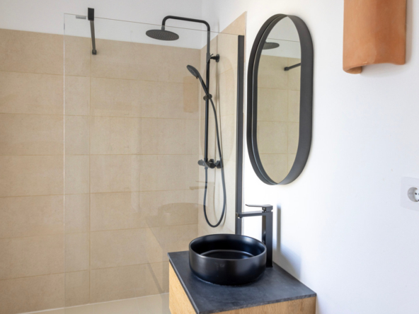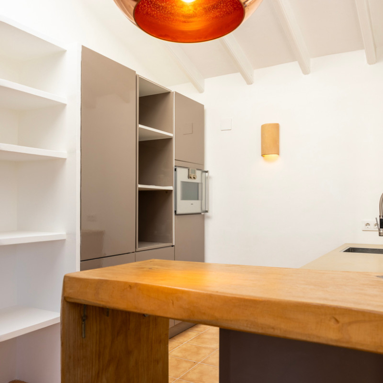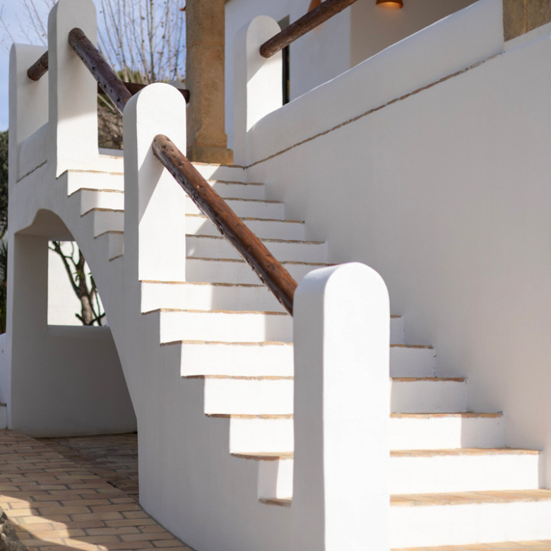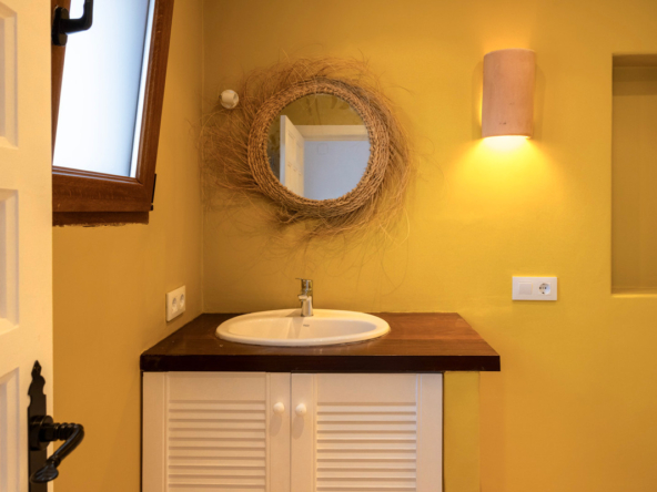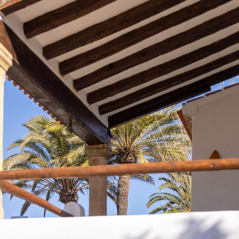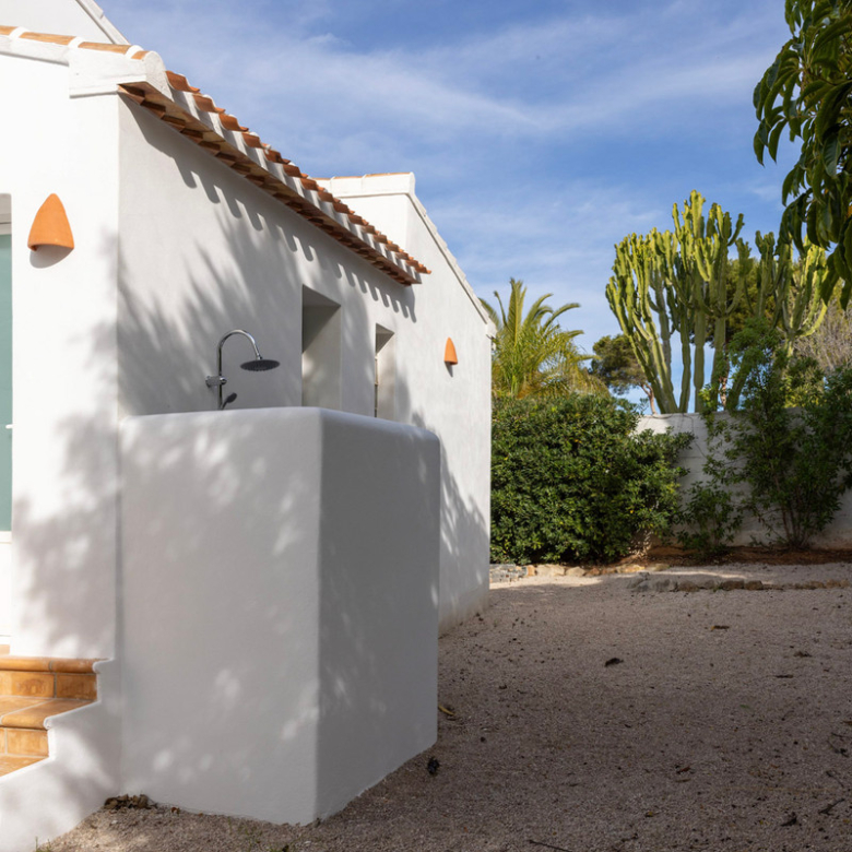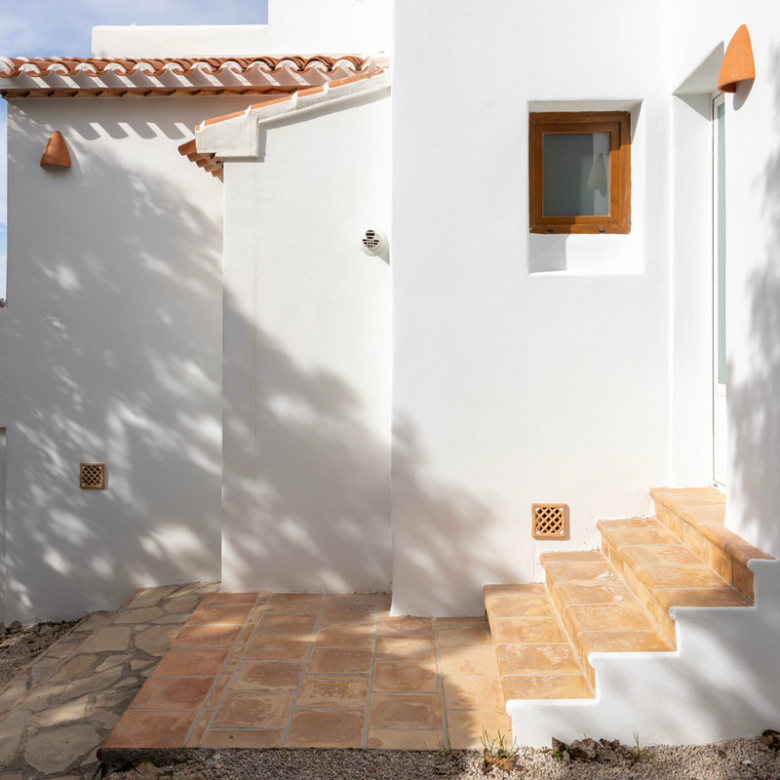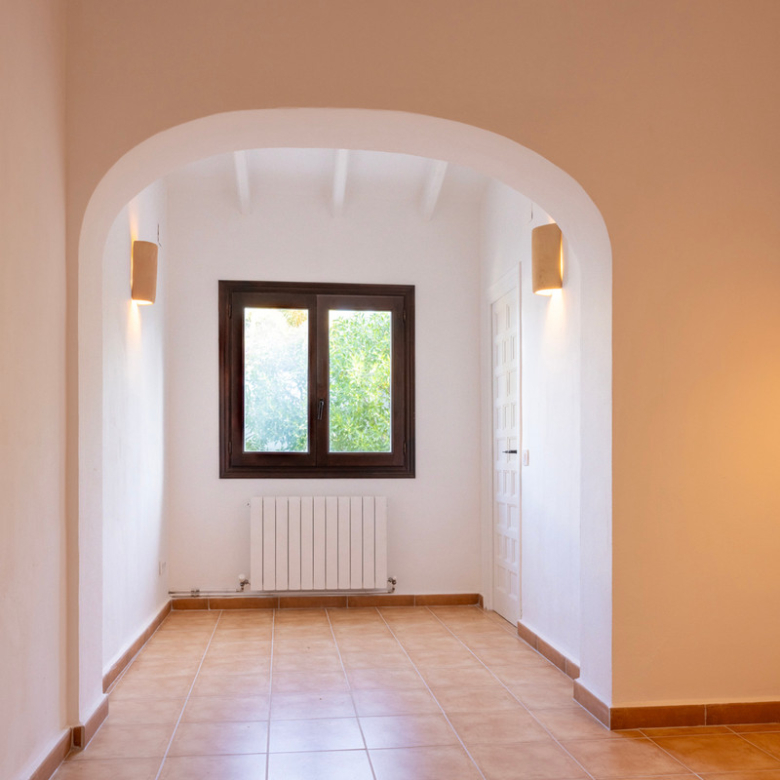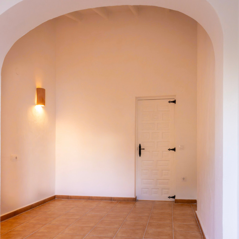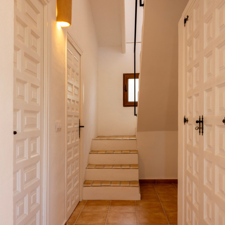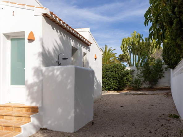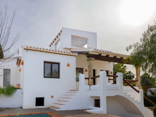 De villa is recent gerenoveerd en verbouwd waarbij er waarde is gehecht aan het behouden van de traditionele Spaanse kenmerken. Bij de renovatie zijn er onder andere nieuwe vloeren gelegd en zijn nieuwe badkamers en een nieuwe keuken geïnstalleerd. Maar ook buiten is de villa gerenoveerd, zo is er een nieuw zwembad van 4×8 geïnstalleerd met een nieuwe buitendouche, een buitenkeuken met barbecue en een lounge. Ook is er een buitenbadkamer en parkeerruimte voor twee wagens. Via de buitentrap bereik je het overdekt terras van waaruit je de bovenverdieping betreedt. Hier kom je binnen in een sfeervolle woon-eetkamer met een open haard en een open keuken met een houten bar. Aangrenzend is een eetkamer met de mogelijkheid deze om te bouwen in een extra slaapkamer. Op deze verdieping bevinden zich ook twee slaapkamers, beiden met een en suite badkamer waarvan één met toegang tot een ruim terras. Nog een verdieping hoger bevindt zich een extra kamer met een aangrenzend terra en een prachtig uitzicht op de vallei en de Montgó. De benedenverdieping bestaat uit een ruimte met een privé-ingang die gebruikt kan worden als kantoor, atelier of slaapkamer en een gastenverblijf bestaande uit een slaapkamer met een en suite badkamer. De villa is voorzien van airconditioning warm-koud en verwarming via radiatoren zodat u het hele jaar door hier in alle comfort kunt verblijven!