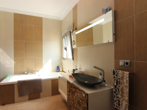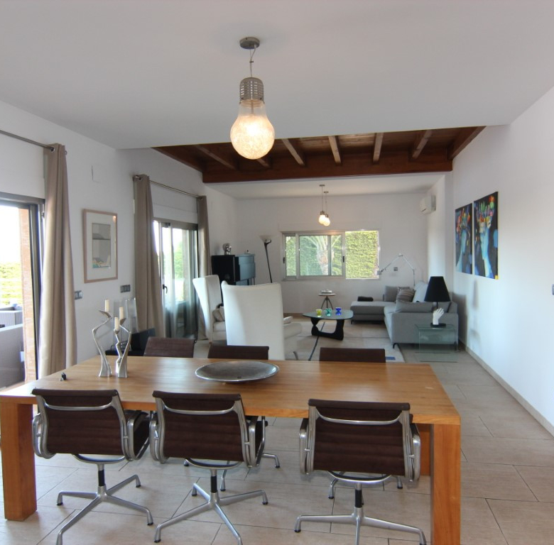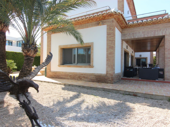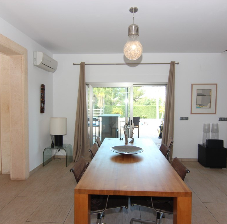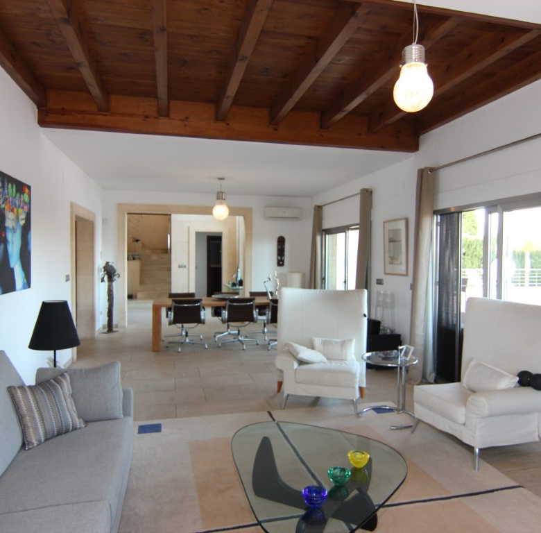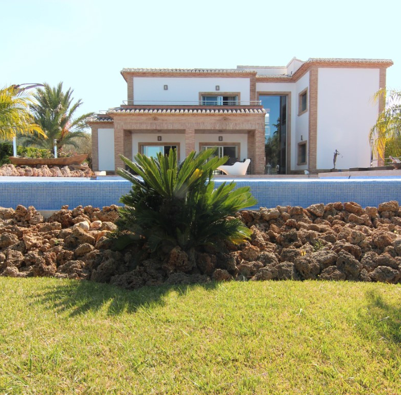 Villa te koop in Javea, gelegen op een rustige locatie kort bij de zee. De villa heeft een ruime inkomhal met dubbele hoogte, een grote woonkamer vanwaar men toegang heeft tot het overdekte terras en de tuin, een ruime keuken met een bijkeuken. Verder zijn er op het gelijkvloers 2 tweepersoons slaapkamers die beide een en suite badkamer hebben. Op de eerste verdieping bevind zich de master bedroom met en suite badkamer en dressing/gym. Buiten in de tuin is er een zwembad van 70m2, het heeft een aparte jacuzzi en een enorm terras. Daarnaast is er nog een tweede terras dat georienteerd is op het oosten waar men van de ochtendzon kan genieten. Verder is er nog een gastenappartement met een woonkamer met een open keuken, 2 tweepersoons slaapkamers en een familiebadkamer. Er is ook nog een garage van 60m2, een technisch lokaal en een oprijlaan waar 4 auto’s kunnen staan. De woning is gebouwd met exclusieve duurzame bouwmaterialen.