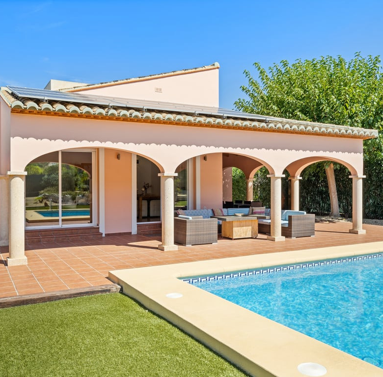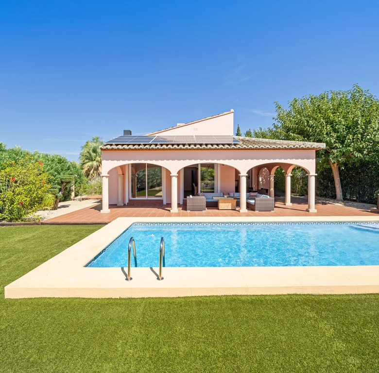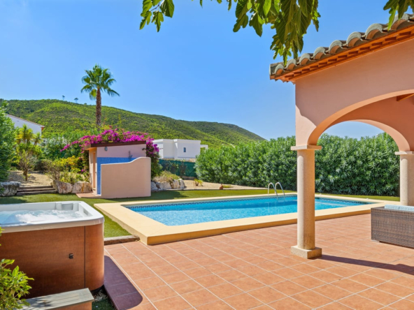 Het dagelijkse leven speelt zich af rond de ruime naya en het grote privézwembad, met prachtig uitzicht op de bergen. Voor extra comfort en efficiëntie zijn delen van het dak, waaronder de naya, uitgerust met zonnepanelen. Het perceel is volledig omheind en voorzien van een automatische poort, parkeergelegenheid op eigen terrein en een garage.