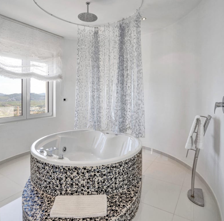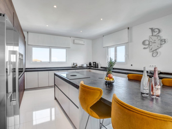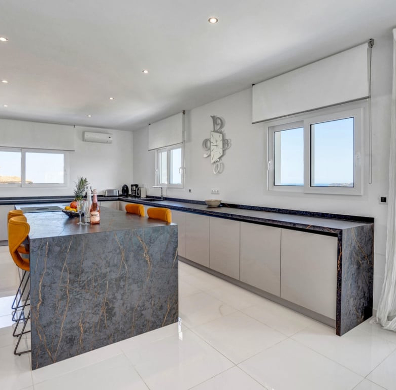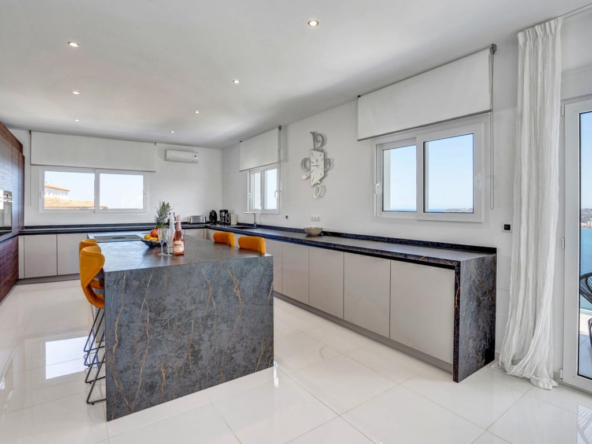 Er zijn vijf suites met tweepersoonsslaapkamers, allemaal met uitzicht op zee. De grote woonkamer is zowel modern als praktisch, met een volledig uitgeruste open keuken in Amerikaanse stijl, zit- en eetgedeeltes.
