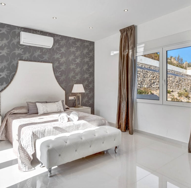 De villa heeft overal warme en koude airconditioning en een intelligent systeem dat gemotoriseerde rolluiken en verlichting regelt.