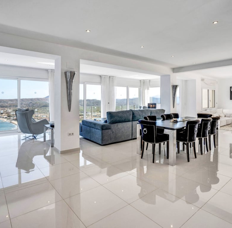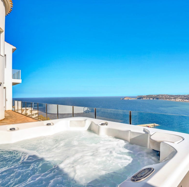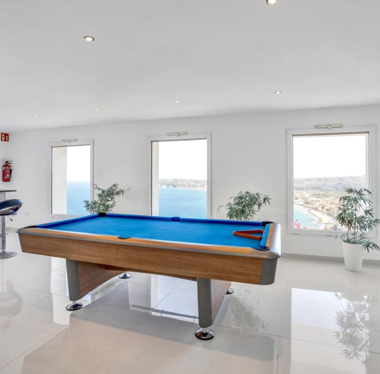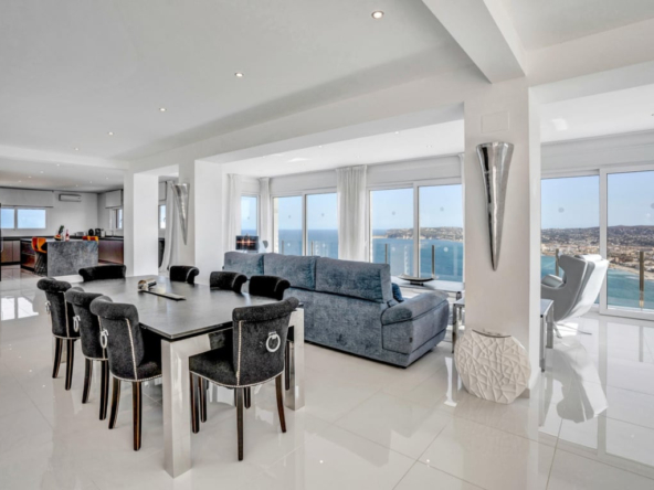 Moderne en ruime villa van 795 m2 op een perceel van 1760 m2, met spectaculair uitzicht op zee en de bergen, gelegen in de populaire wijk La Corona, met uitzicht op de haven van Jávea. Met 2 zwembaden, een verwarmd binnen- en buitenzwembad, een volledig uitgeruste bioscoop, een bar/speelkamer, een yoga-/stretchruimte, twee sauna’s en een jacuzzi met uitzicht op de Middellandse Zee.