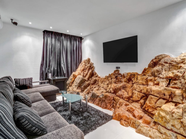 Deze unieke villa is zo gebouwd dat de rots waarop het is gebouwd op diverse plekken is geïntegreerd als een fantastische eyecatcher die karakter geeft aan dit huis. Een kunstwerk op zich!