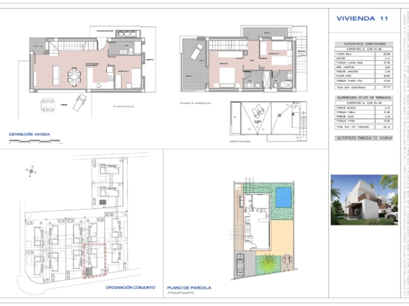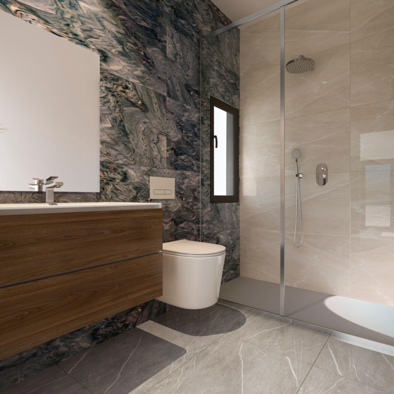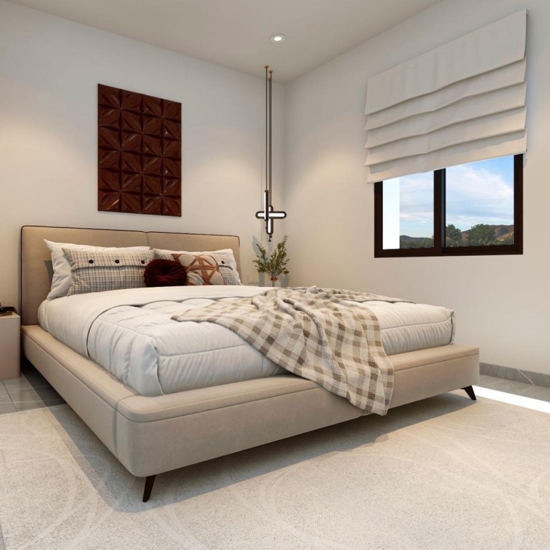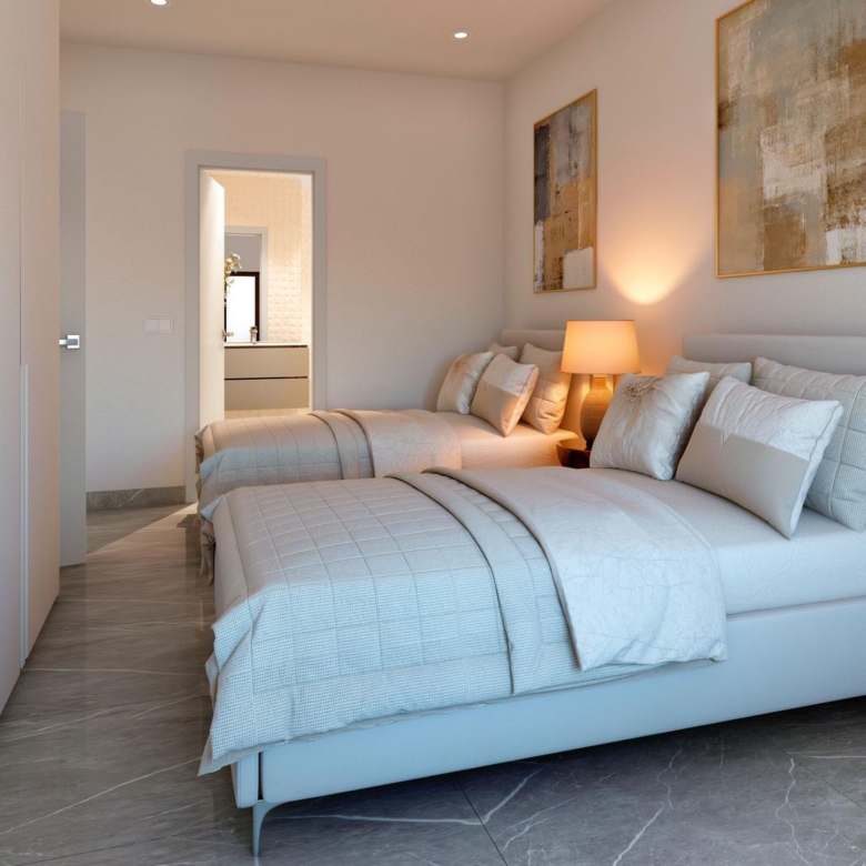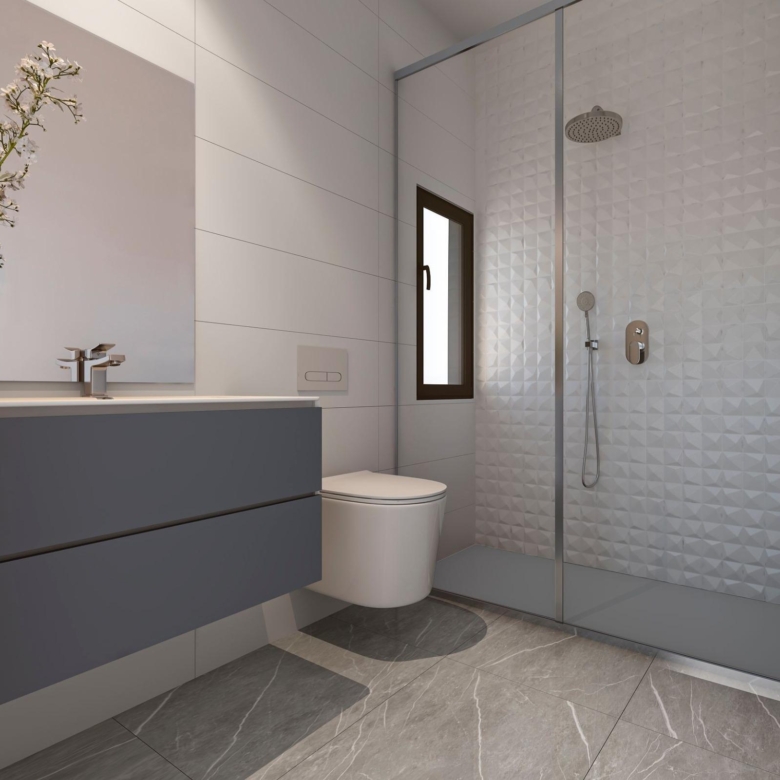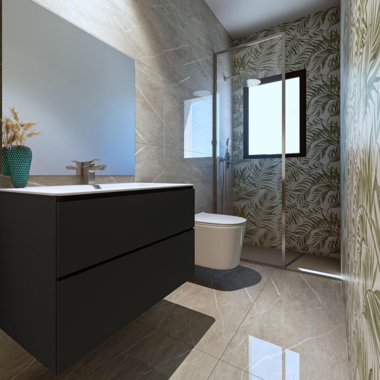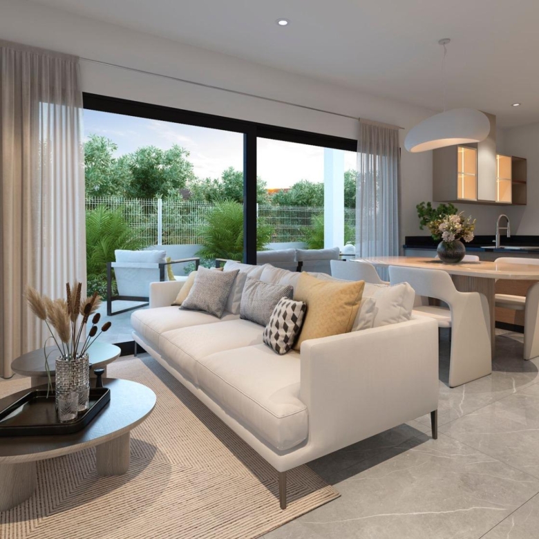 De villa is onafhankelijk, moderne mediterrane stijl, met 3 slaapkamers met 3 badkamers en een open keuken naar de woonkamer, met een eigen perceel en met een verharde parkeerplaats (met capaciteit voor twee voertuigen).
