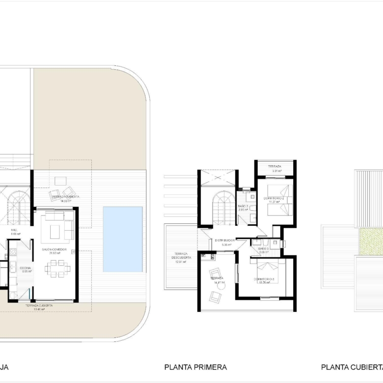 Ontdek deze prachtige nieuwbouwvilla’s in La Nucía, elk met privézwembad en parkeerplaats. Deze onafhankelijke villa’s hebben 3 slaapkamers en 3 badkamers, verdeeld over twee verdiepingen. Op de begane grond bevindt zich een van de slaapkamers, die gemakkelijk toegankelijk is. Op de eerste verdieping biedt een terras van 14 m² een helder, onbelemmerd uitzicht en sommige woningen hebben uitzicht op zee.
