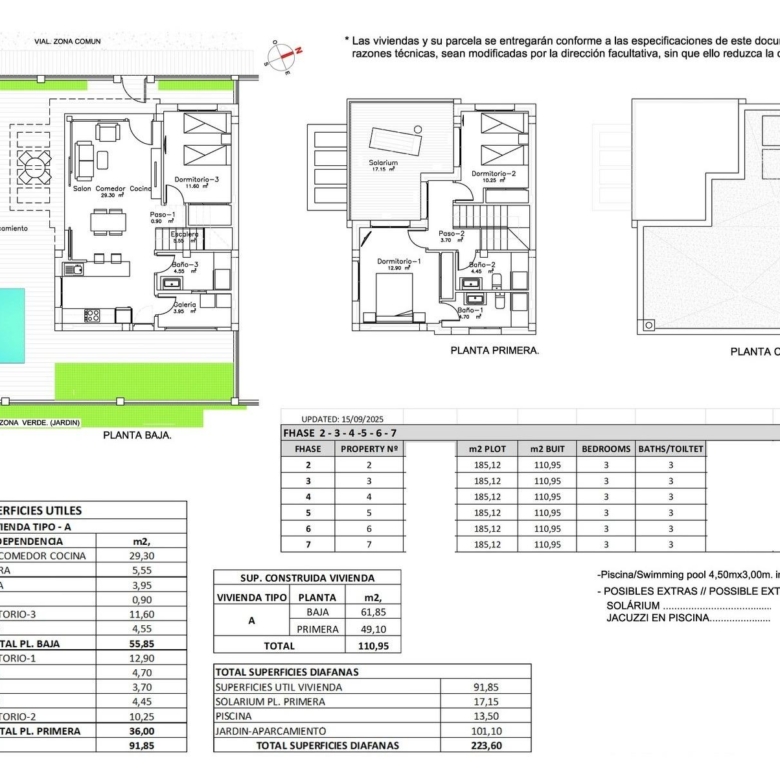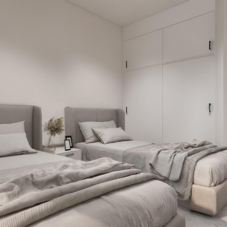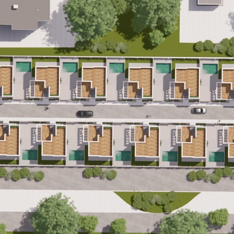 Elke villa heeft 110 m² goed geplande woonruimte, verdeeld over twee verdiepingen, ontworpen om natuurlijk licht en functionaliteit te maximaliseren. De woningen zijn gebouwd op percelen vanaf 185 m² en bieden royale buitenruimtes die perfect zijn om te zonnebaden, te entertainen of te ontspannen bij het privézwembad.