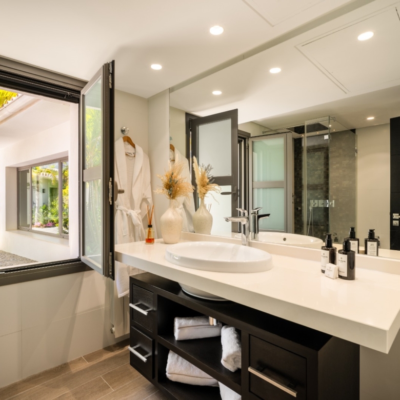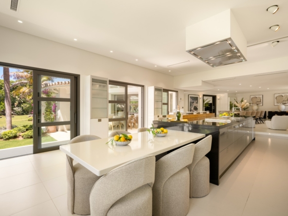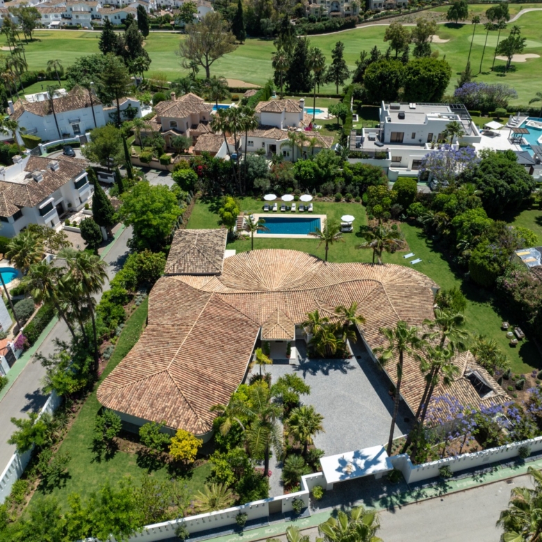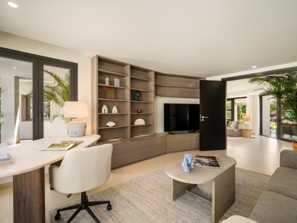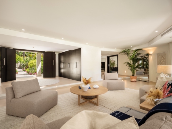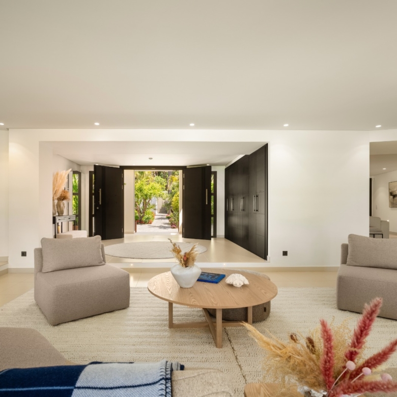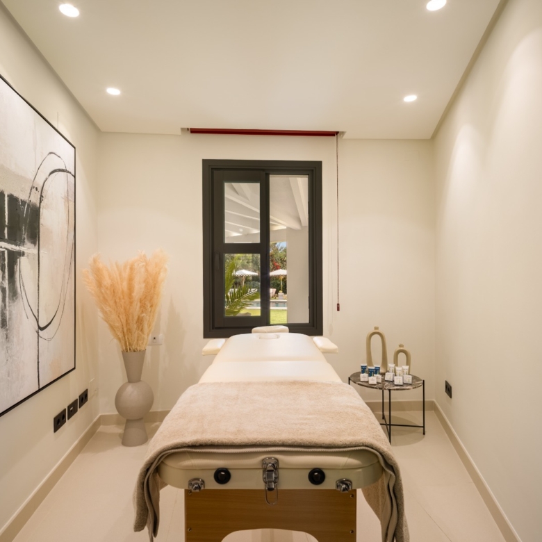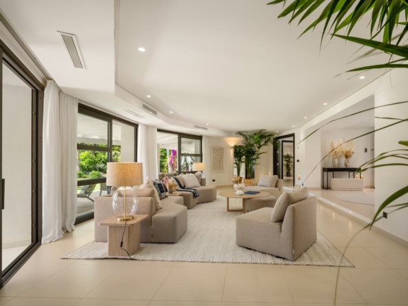 Gelegen in het exclusieve gebied van Marbella, biedt deze villa een bevoorrechte omgeving op slechts 1 km van de zee. Ontworpen voor degenen die op zoek zijn naar een luxe woning, integreert het pand perfect in het mediterrane landschap, wat een toevluchtsoord van rust en comfort biedt. Met een moderne en elegante architectuur is deze villa ideaal voor degenen die willen genieten van het leven aan de Costa del Sol, waarbij privacy en nabijheid van de beste stranden van de regio worden gecombineerd.