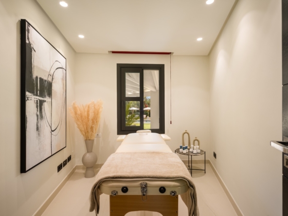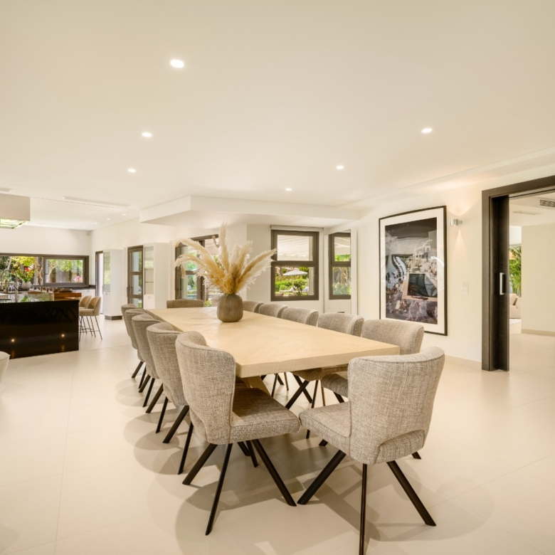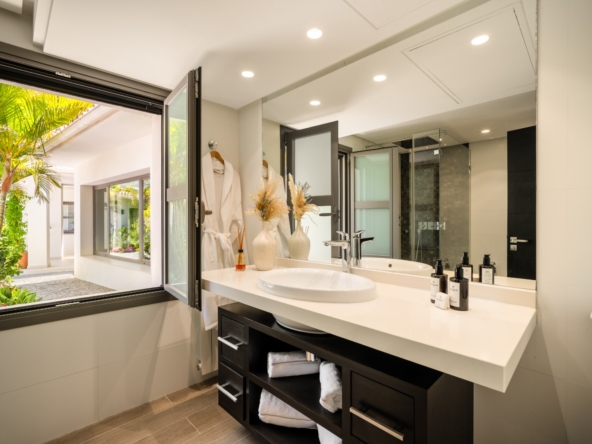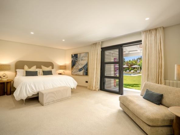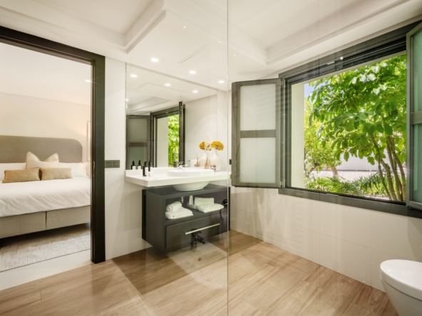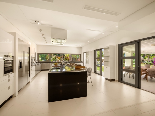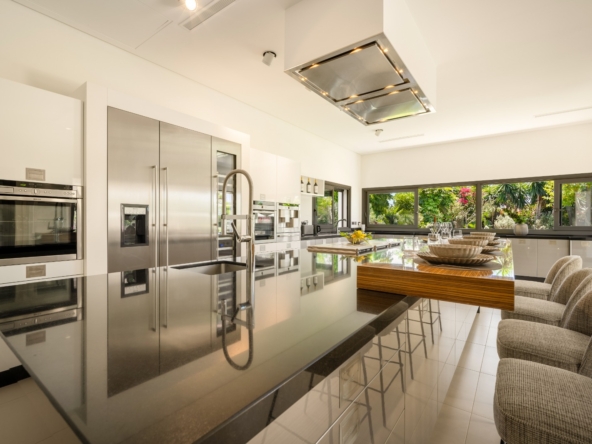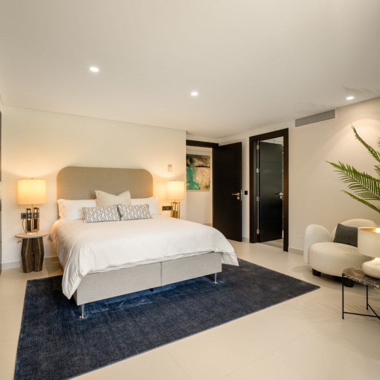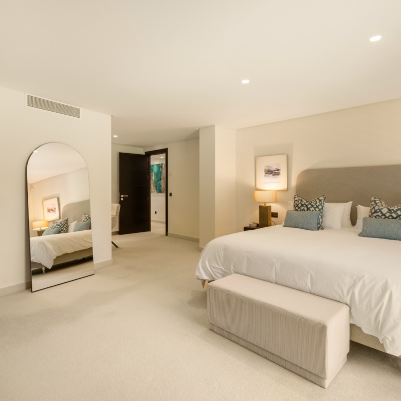 Het interieur van de villa is zorgvuldig ontworpen om maximaal comfort en functionaliteit te bieden. Met in totaal 5 slaapkamers en 5 badkamers is elke ruimte bedacht om privacy en comfort te bieden. De ingebouwde kasten in de kamers bieden efficiënte en elegante opslag. De indeling omvat een garage, wat ruimte biedt voor voertuigen en extra opslag. Elk detail van het interieur weerspiegelt een toewijding aan kwaliteit en stijl, waardoor een gastvrije en verfijnde sfeer ontstaat.
