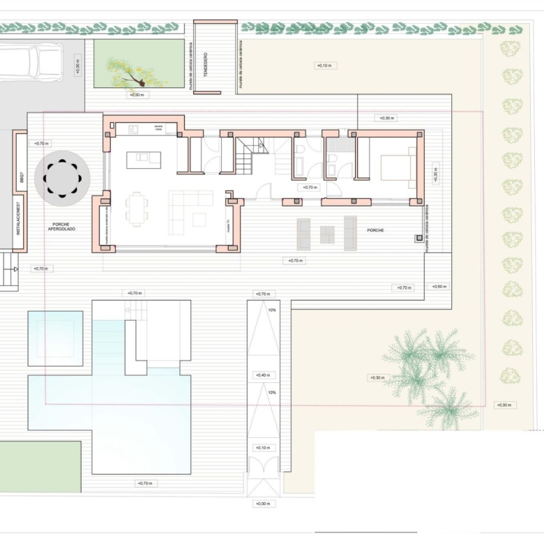 Met esthetische en functionele planning in het achterhoofd heeft de villa een zorgvuldig doordacht ontwerp dat de ruimte optimaliseert en het dagelijks leven verbetert.