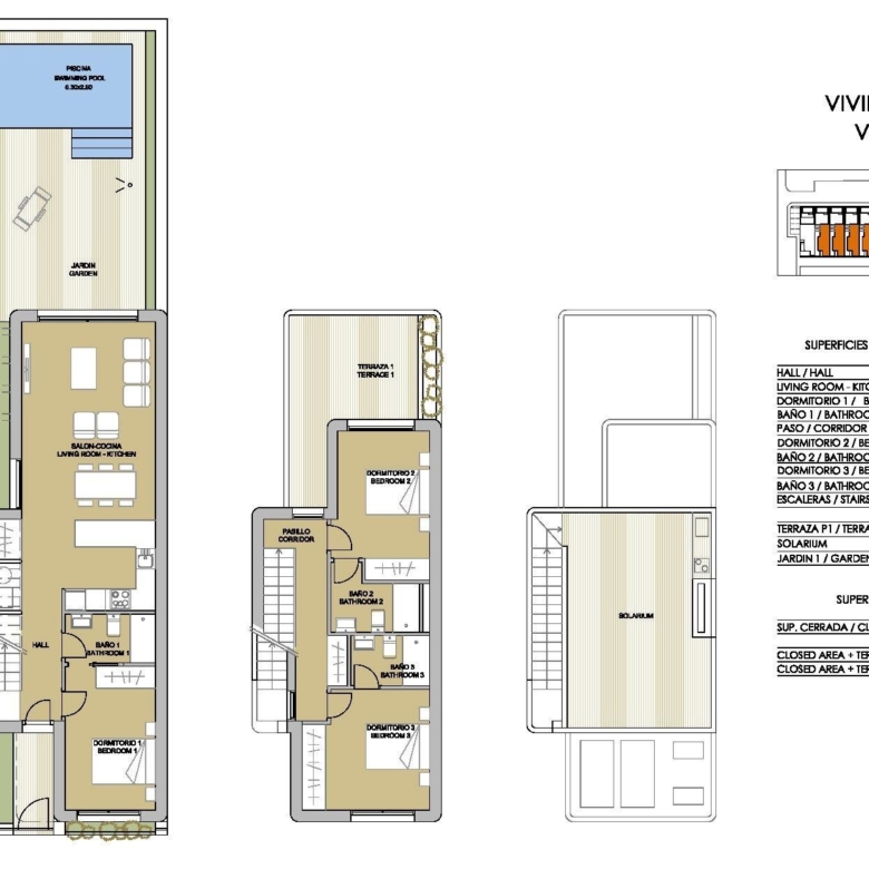 Elke villa heeft prachtige terrassen, een solarium en een mooie tuin met een designzwembad. Met een onovertroffen oriëntatie, dicht bij het strand en binnen een geconsolideerde urbanisatie met sportfaciliteiten en recreatiegebieden.