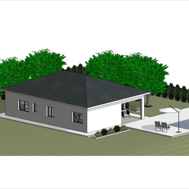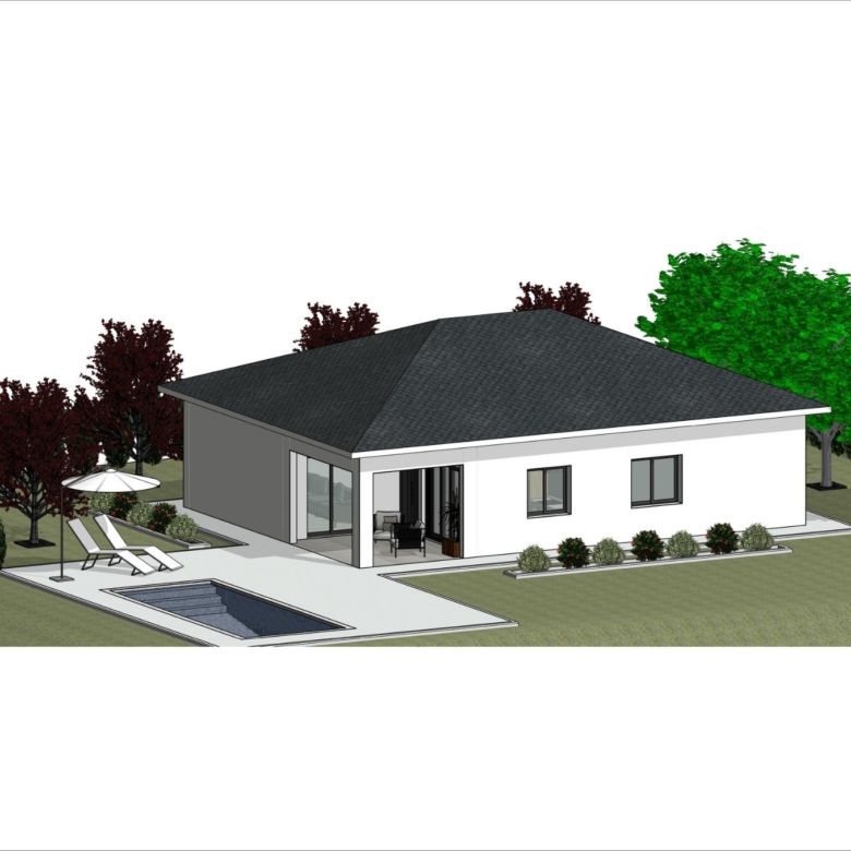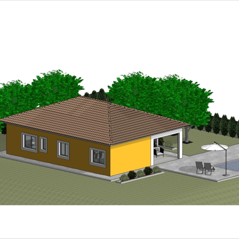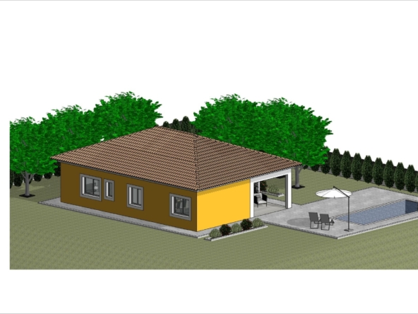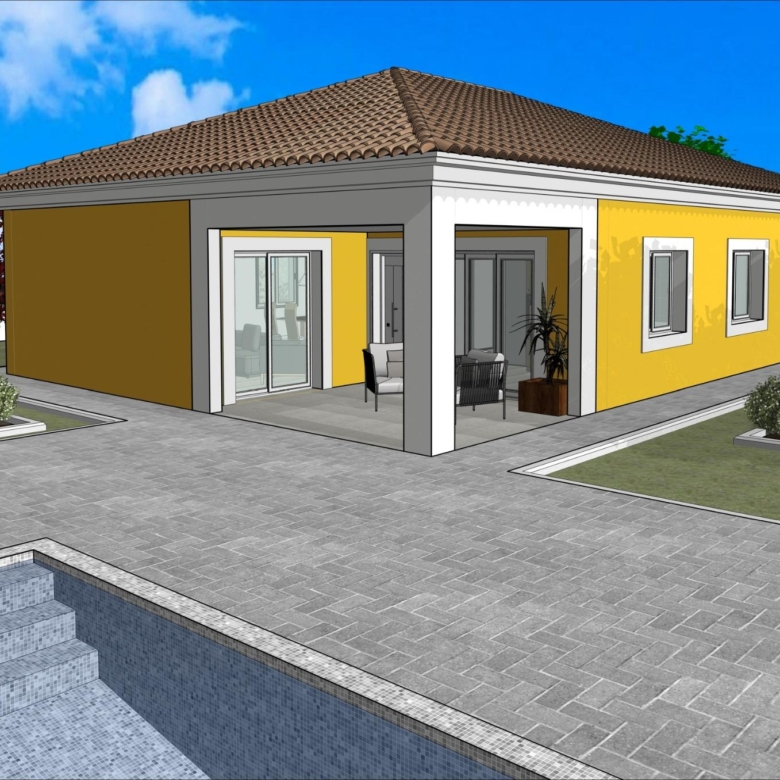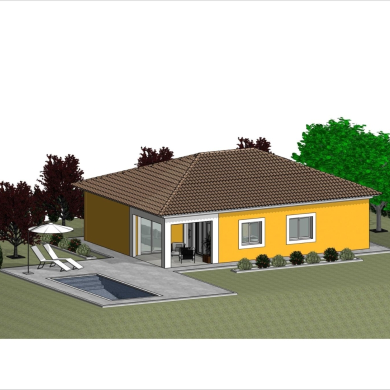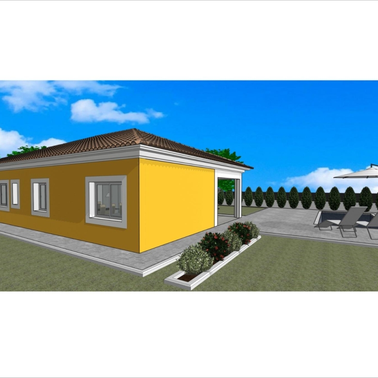 Gelijkvloerse villa gebouwd op het rustieke perceel van 10.548 m2, (waarvan 2.500 m2 omheind) heeft 2 slaapkamers en 2 badkamers, open keuken met zithoek, inbouwkasten, privézwembad en parkeerplaats.