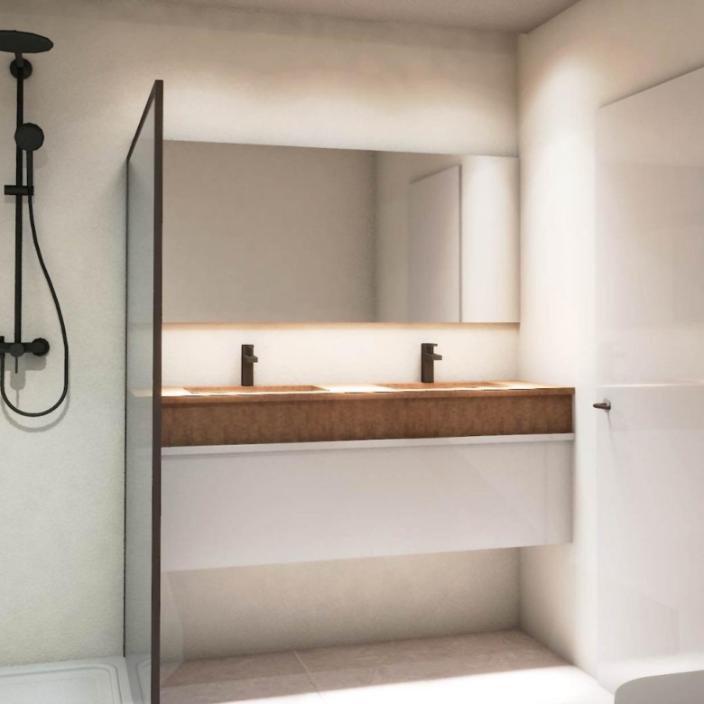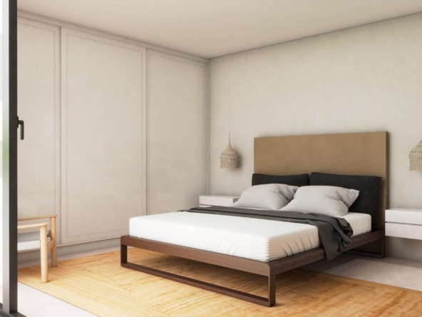 Villa is verdeeld over een hoofdverdieping, met 2 grote slaapkamers, 2 badkamers, en een keuken geïntegreerd in de lichte woonkamer die toegang geeft tot de tuin en het zwembad.