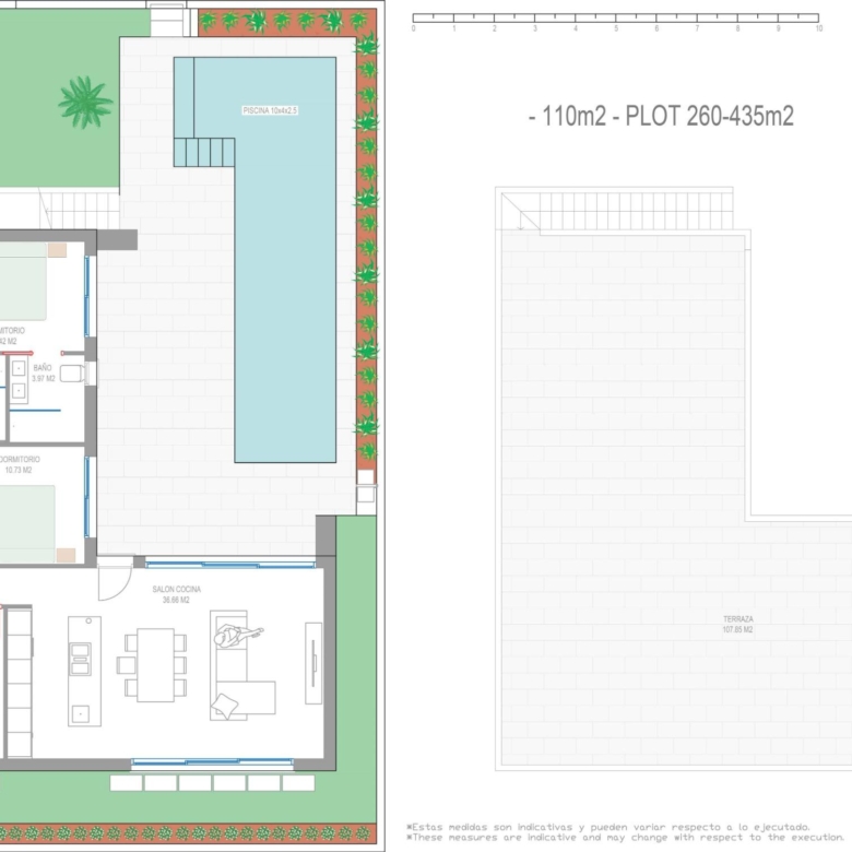 Villas gebouwd over 1 verdieping en bestaat uit 3 slaapkamers, 2 badkamers, open keuken, de woonkamer met open uitzicht op het terras, solarium, prive tuin met het zwembad.
