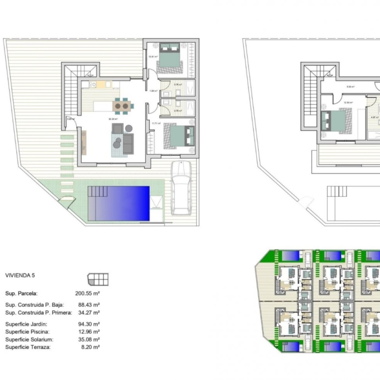 Alle villa’s hebben een eigen tuin met zwembad en parkeerplaats.