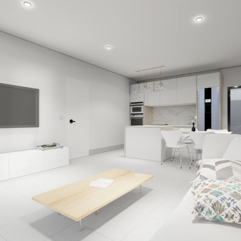 Ontworpen met een eigentijdse stijl en open gepland concept, bestaande uit een volledig uitgeruste keuken en woon-eetkamer.