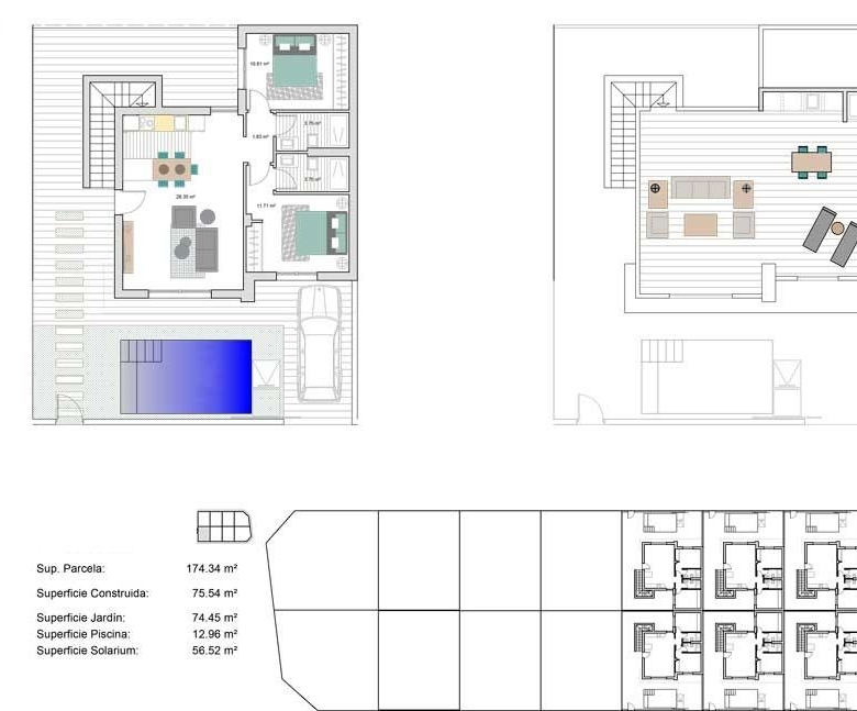 Nieuwbouw luxe complex van een of twee verdiepingen semi-vrijstaande villa’s in Roldan.