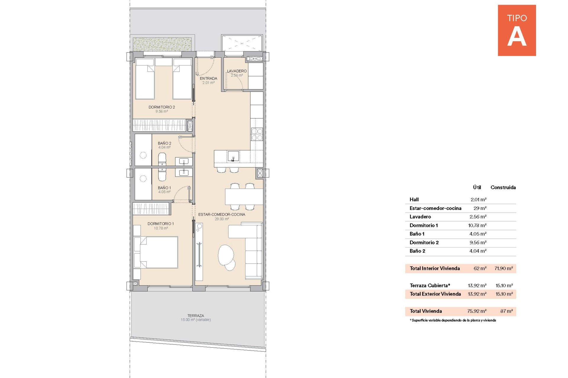 Het interieur van de woningen is ontworpen om maximaal comfort en functionaliteit te bieden. De vloeren van porseleinen tegels geven een vleugje elegantie en zijn gemakkelijk te onderhouden. Alle eigendommen zijn uitgerust met airconditioning, wat het hele jaar door een aangename sfeer garandeert. Moderne apparaten maken het dagelijks leven gemakkelijker, terwijl ingebouwde kasten efficiënte en georganiseerde opslag bieden. De indeling van de woningen is ontworpen om de ruimte te optimaliseren, met ruime woonruimtes die naadloos integreren met de terrassen, waardoor er een continue stroom ontstaat tussen binnen en buiten.