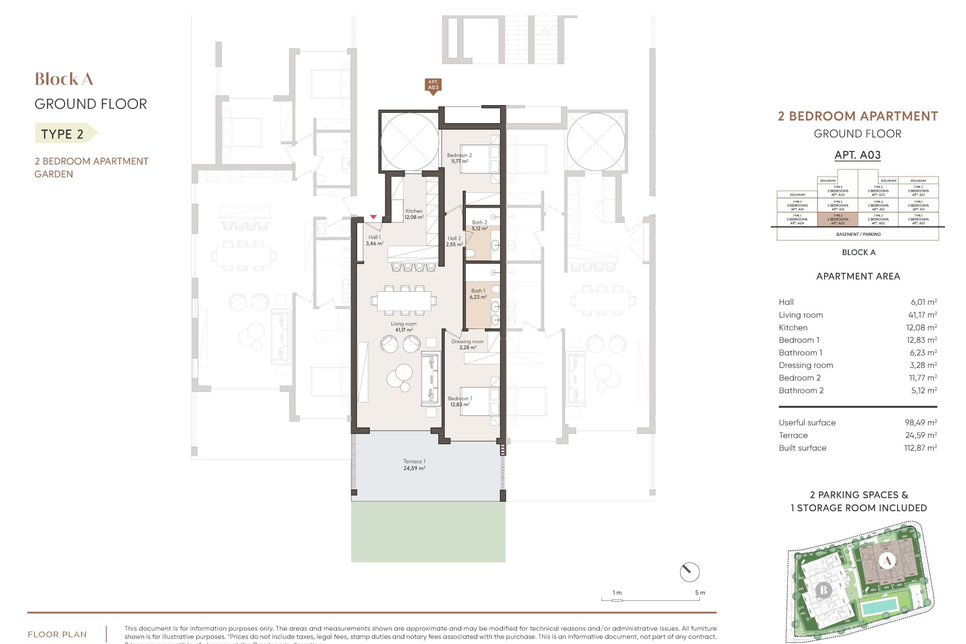 The exteriors of this residential in Estepona are designed to maximize enjoyment of the Mediterranean climate. The properties include private terraces, perfect for enjoying sea views and fresh air. Additionally, some homes feature solariums, providing extra space for relaxation and outdoor entertainment. Private gardens, available in certain types, offer a tranquil oasis and an ideal space for outdoor activities. The exterior design is complemented by high-quality materials, such as porcelain flooring, ensuring durability and style.