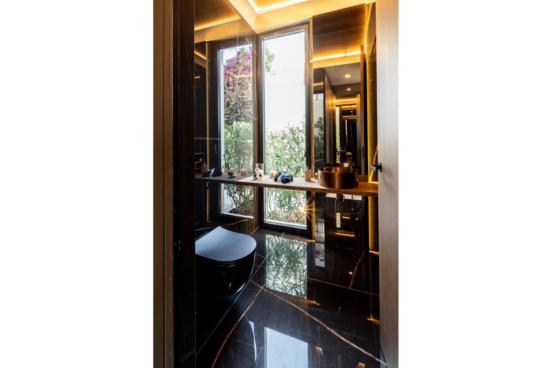 The villa's interior is designed to offer maximum comfort and functionality. Porcelain floors add a touch of elegance and are easy to maintain. The villa is equipped with air conditioning and underfloor heating, ensuring a pleasant temperature year-round. High-end appliances are included, facilitating daily life. Built-in wardrobes in the bedrooms offer ample storage space, maintaining order and organization. Additionally, the video intercom system provides an extra level of security and convenience.