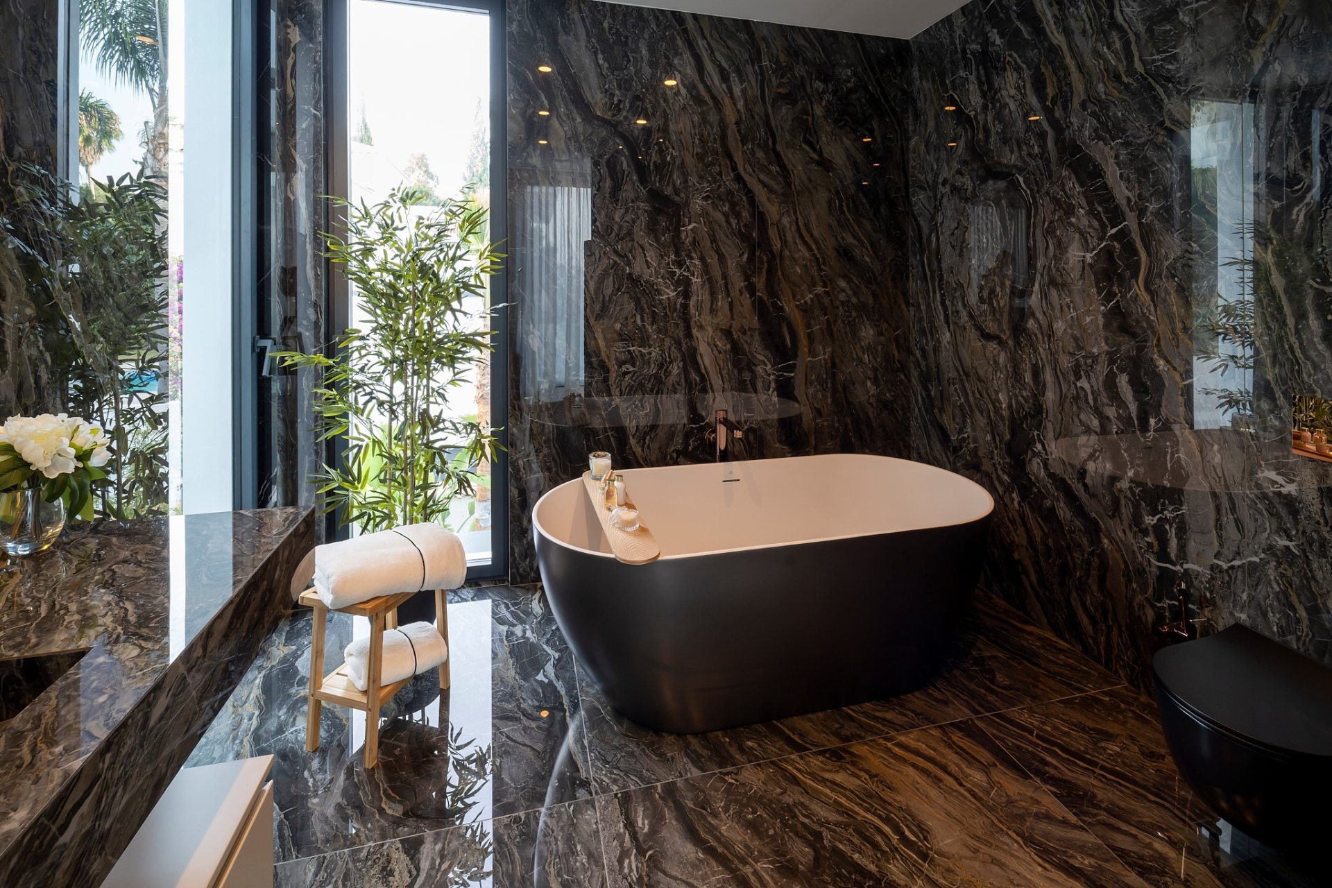 The exteriors of this villa are a true oasis of tranquility. The property features a private garden, ideal for enjoying the Mediterranean climate and hosting outdoor gatherings. The terrace offers additional space for relaxation, with views that complement the beauty of the surroundings. Additionally, the villa has a private pool, perfect for cooling off during warm summer days. Garage access provides convenience and security for vehicles, ensuring all modern living needs are met.